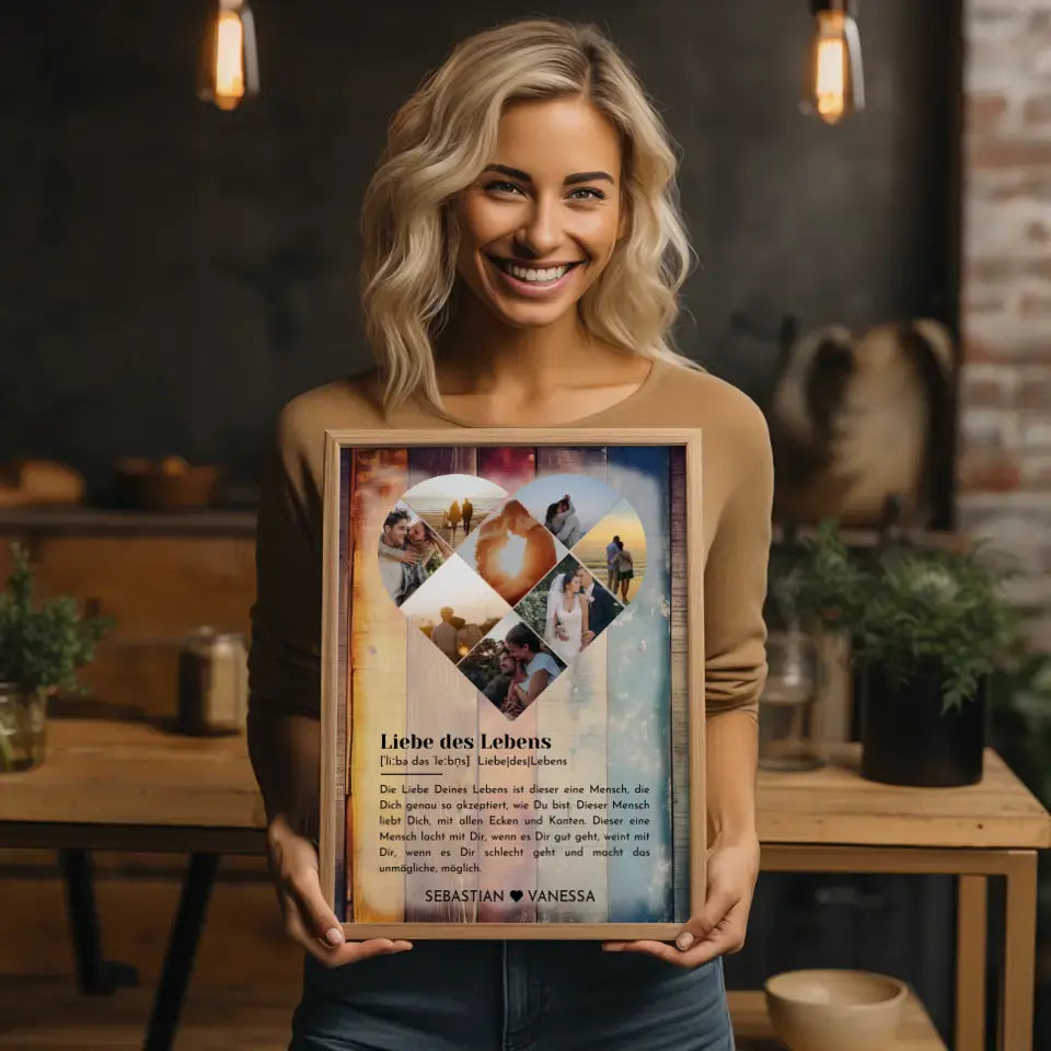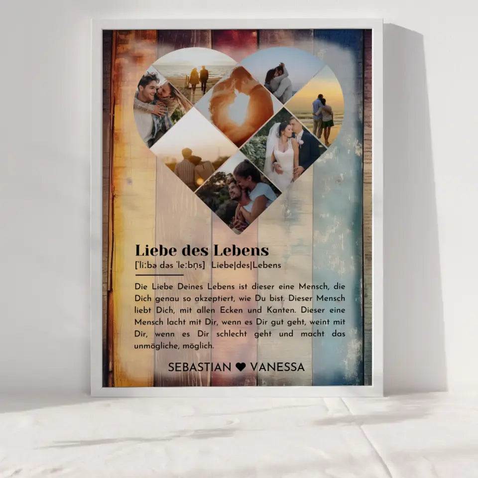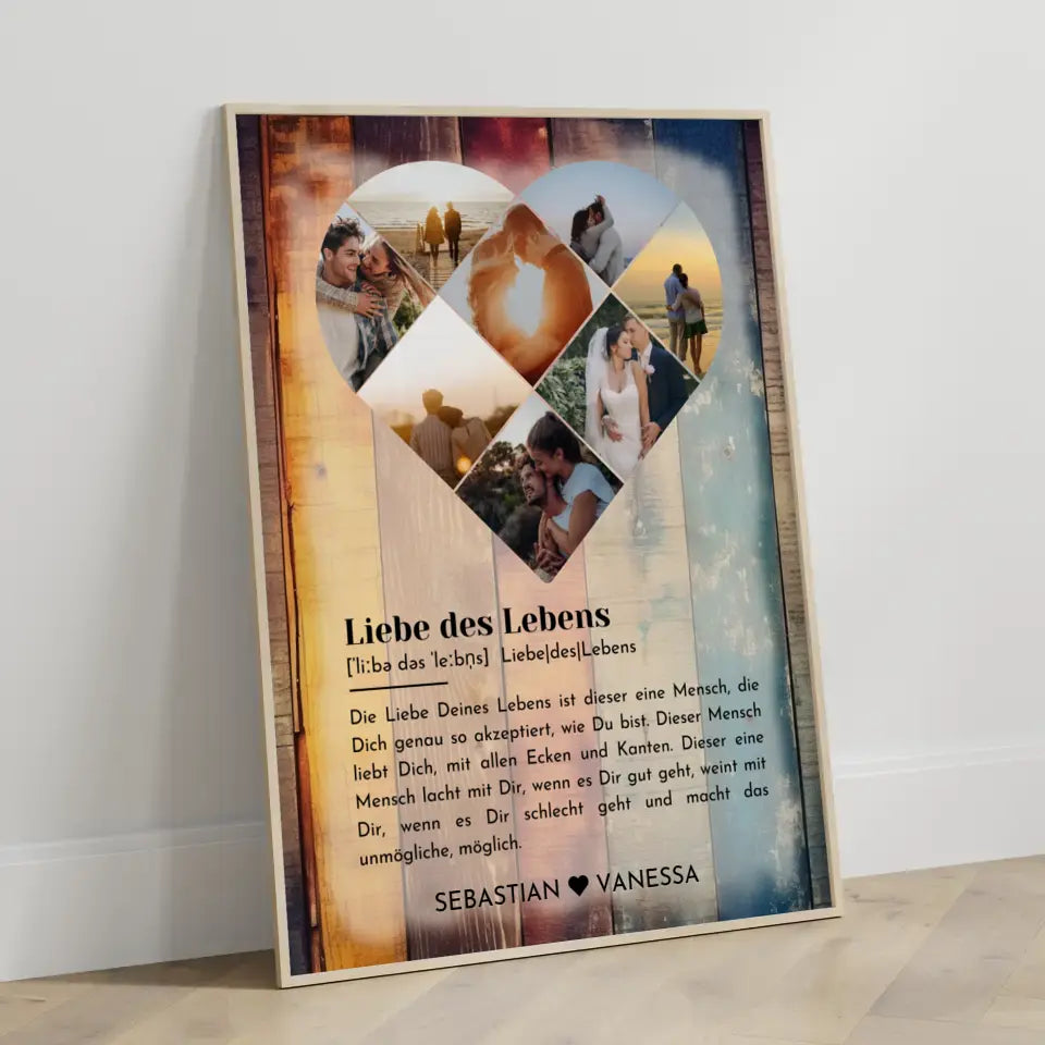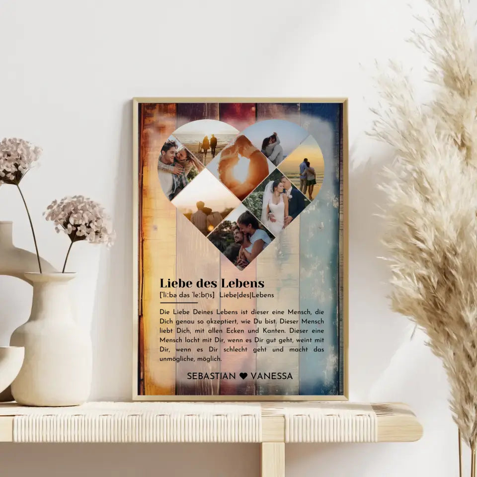 Unser Personalisiertes Poster mit Herz aus Fotos Liebe Definition Holz Stil Bunt Mit 8 Fotos & Namen