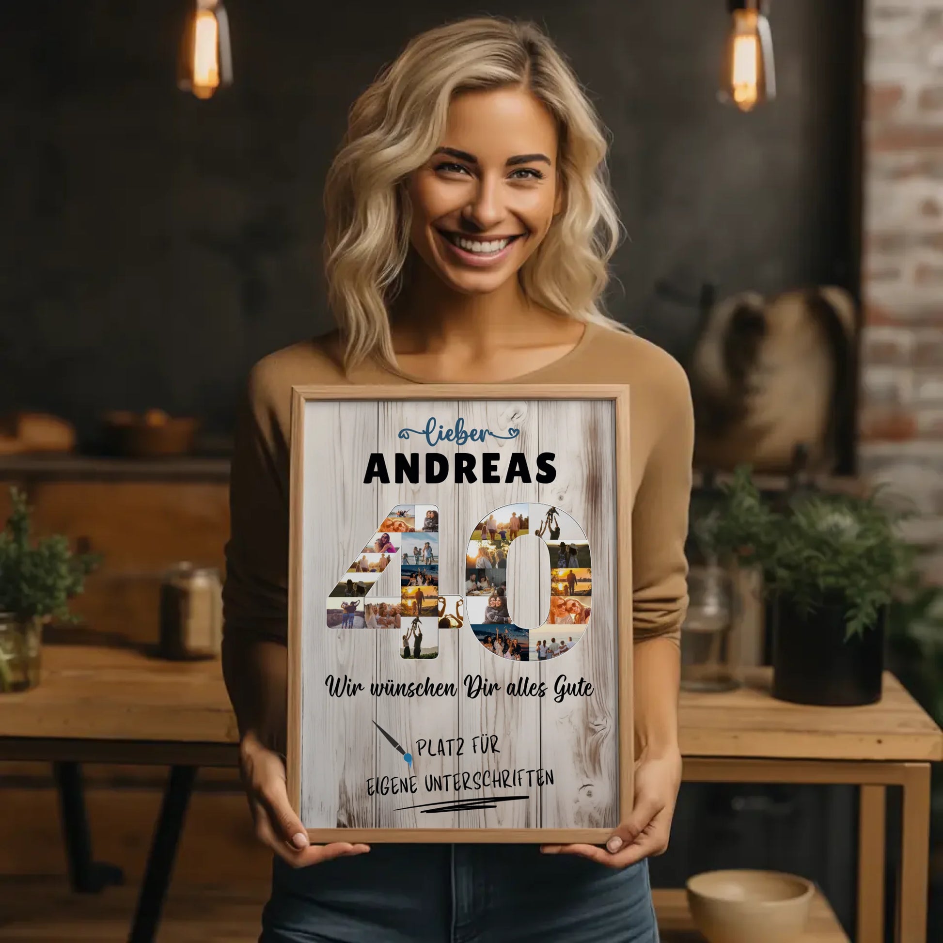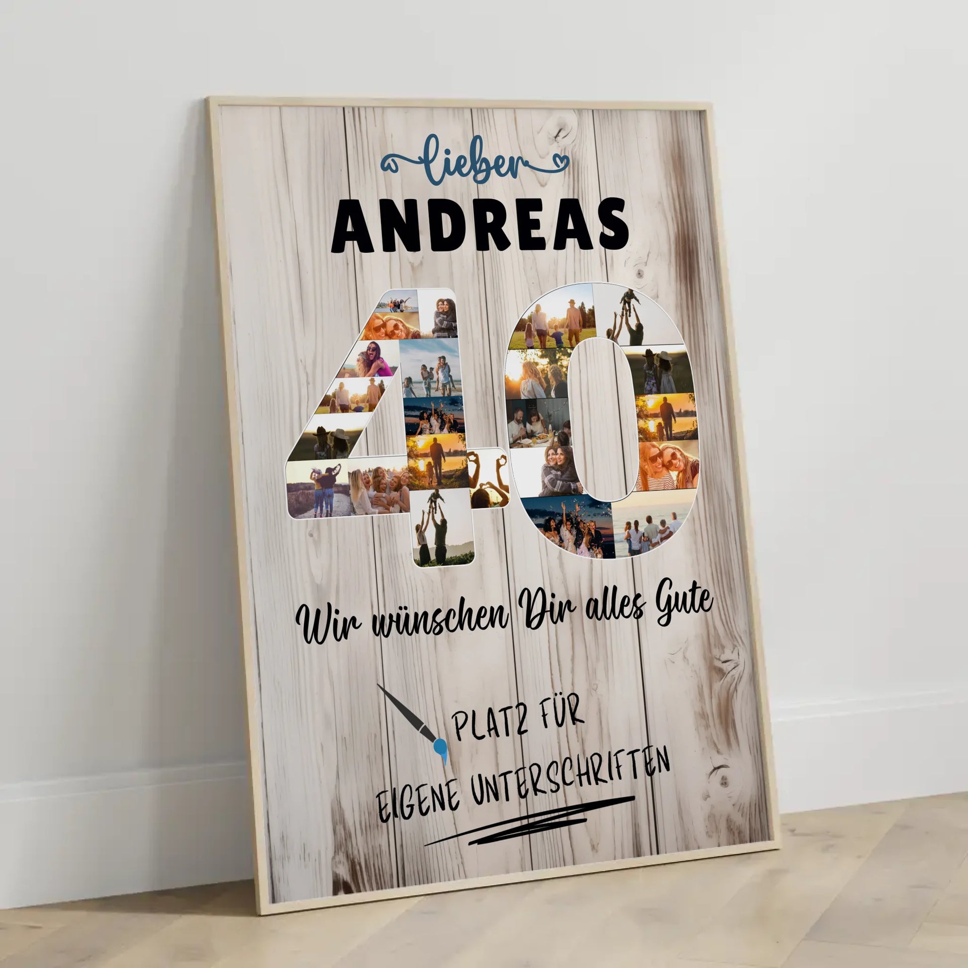 Möchtest du ein einzigartiges und originelles Geschenk zum 40. Geburtstag finden? Mit unserem personalisierten Poster mit Unterschriften machst du garantiert Eindruck! Dieses personalisierte Poster bietet dir über 20+ Fotos, die du auswählen kannst, sowie die Möglichkeit, einen eigenen Spruch oder Wunschtext hinzuzufügen. Perfekt für Papa oder Bruder, wird dieses Geschenk zu einem ganz besonderen Highlight des Geburtstags.