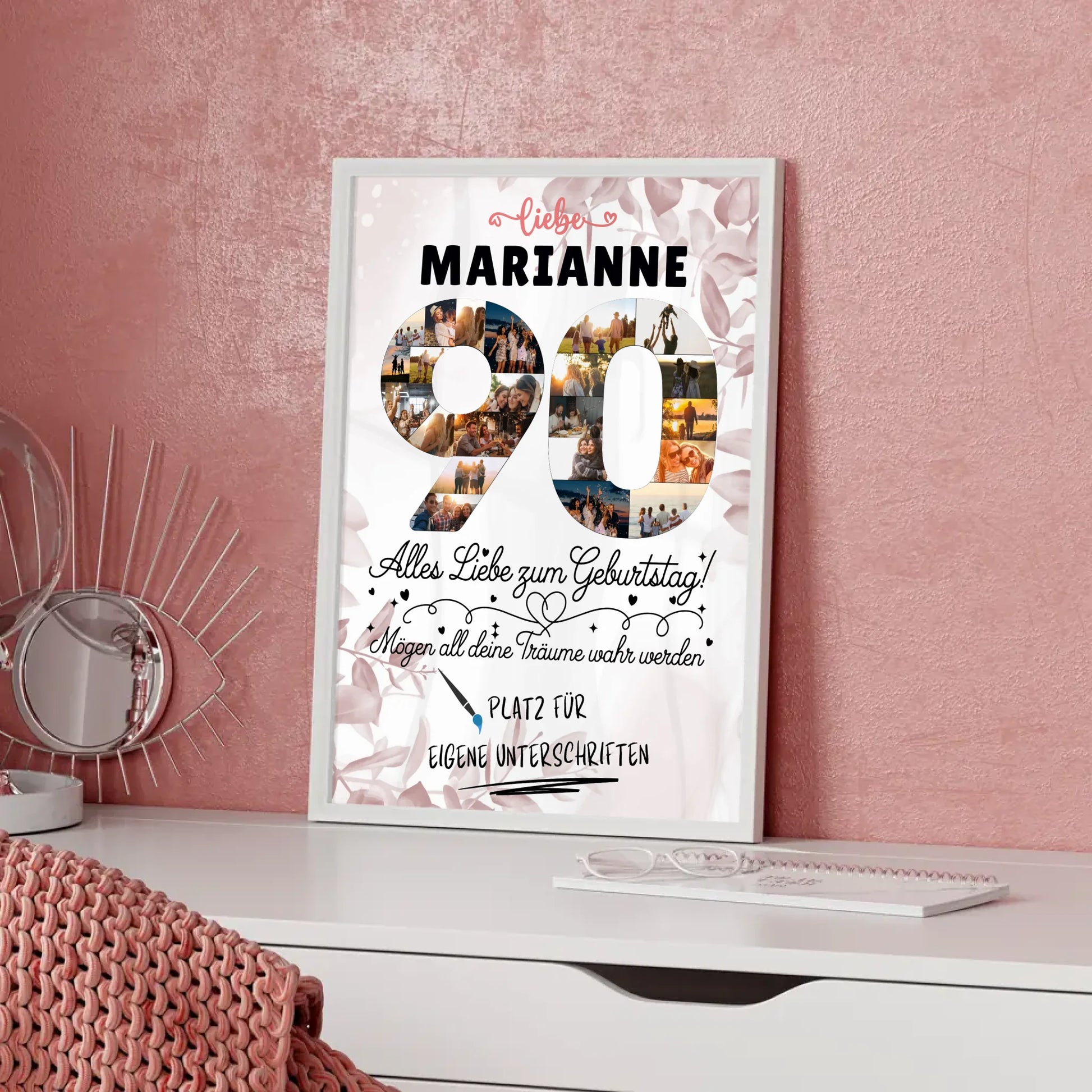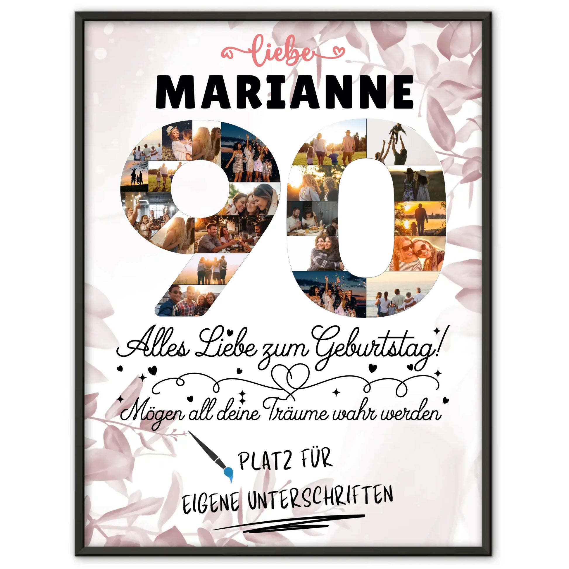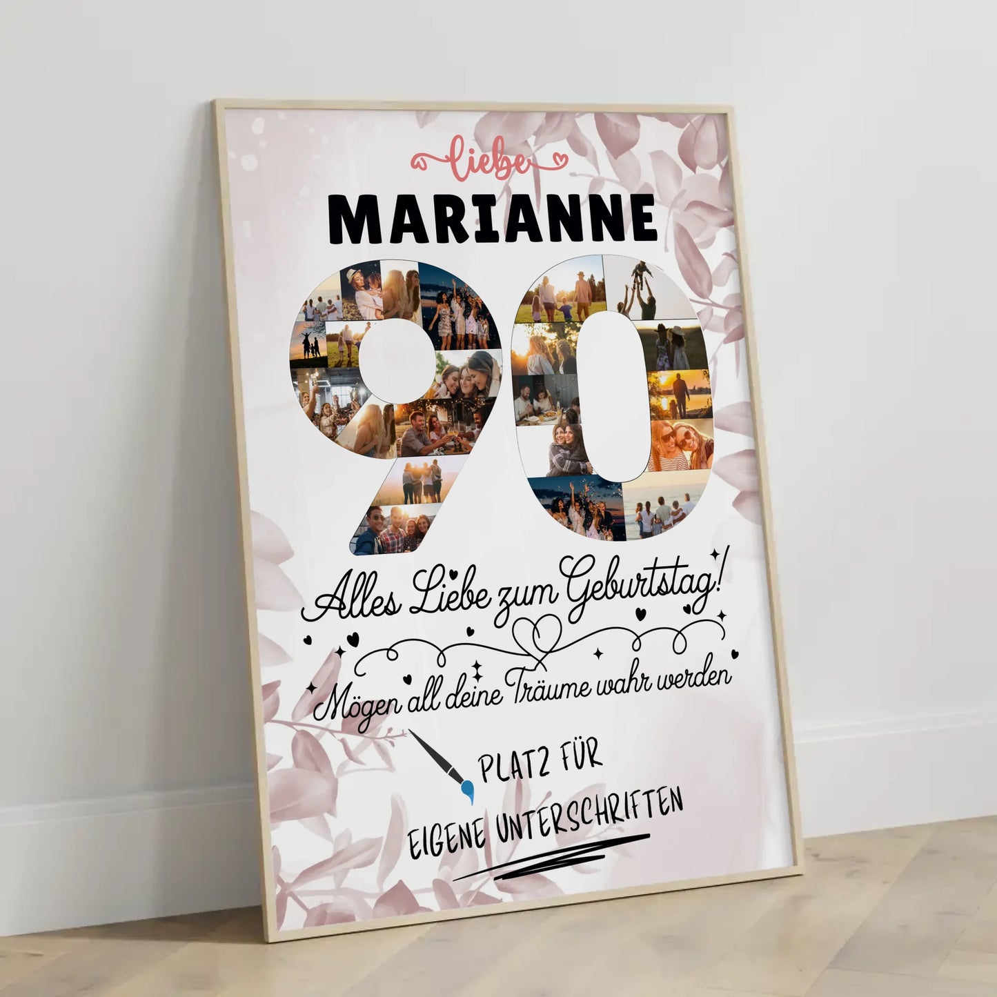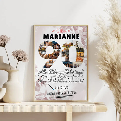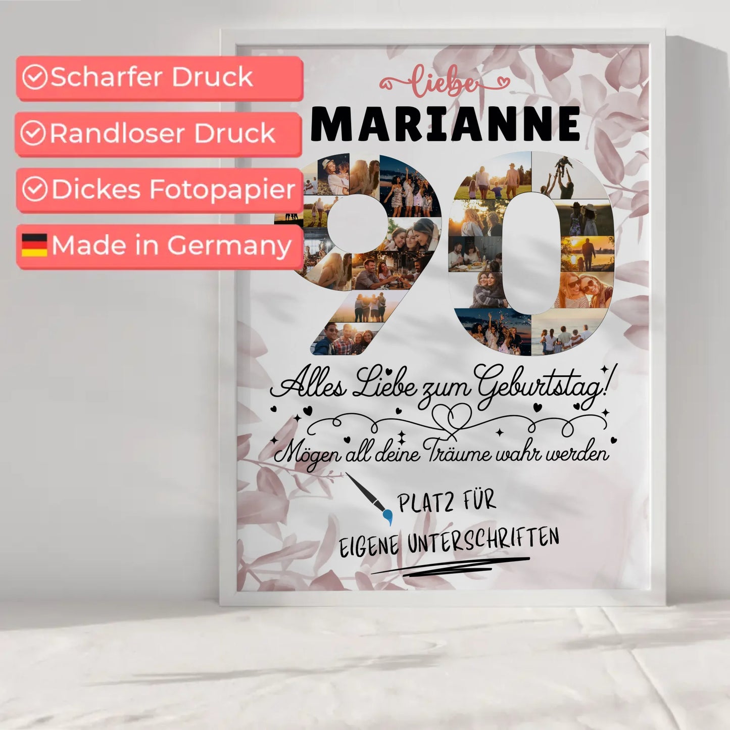 Personalisiertes Poster mit Unterschriften 90 Geburtstag Fotos Name