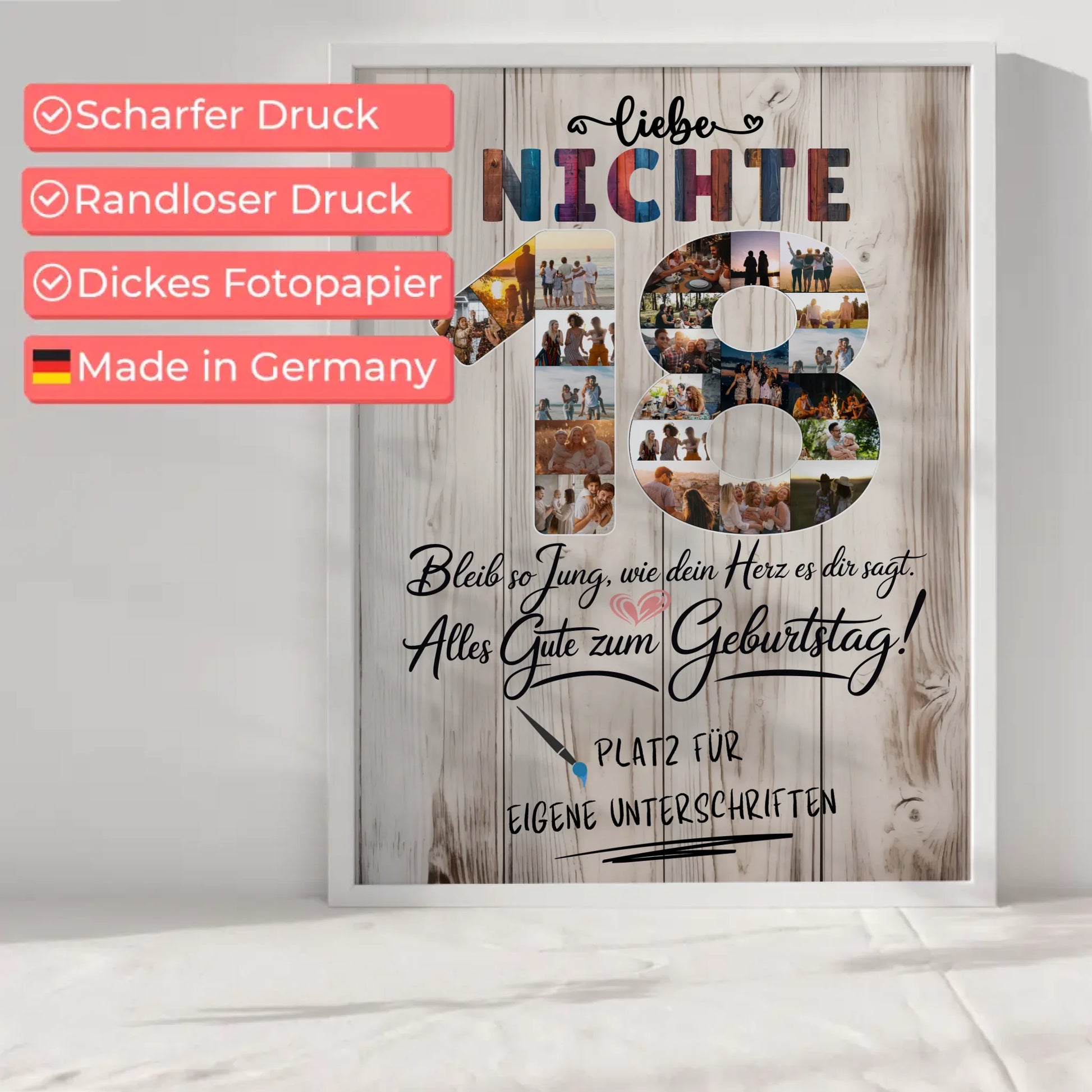 Personalisiertes Poster mit Unterschriften Nichte 18 Geburtstag Fotos