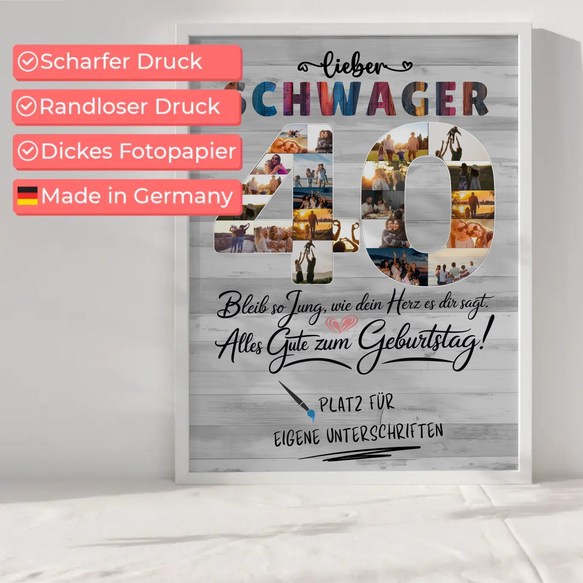 Personalisiertes Poster mit Unterschriften Schwager 40 Geburtstag Fotos