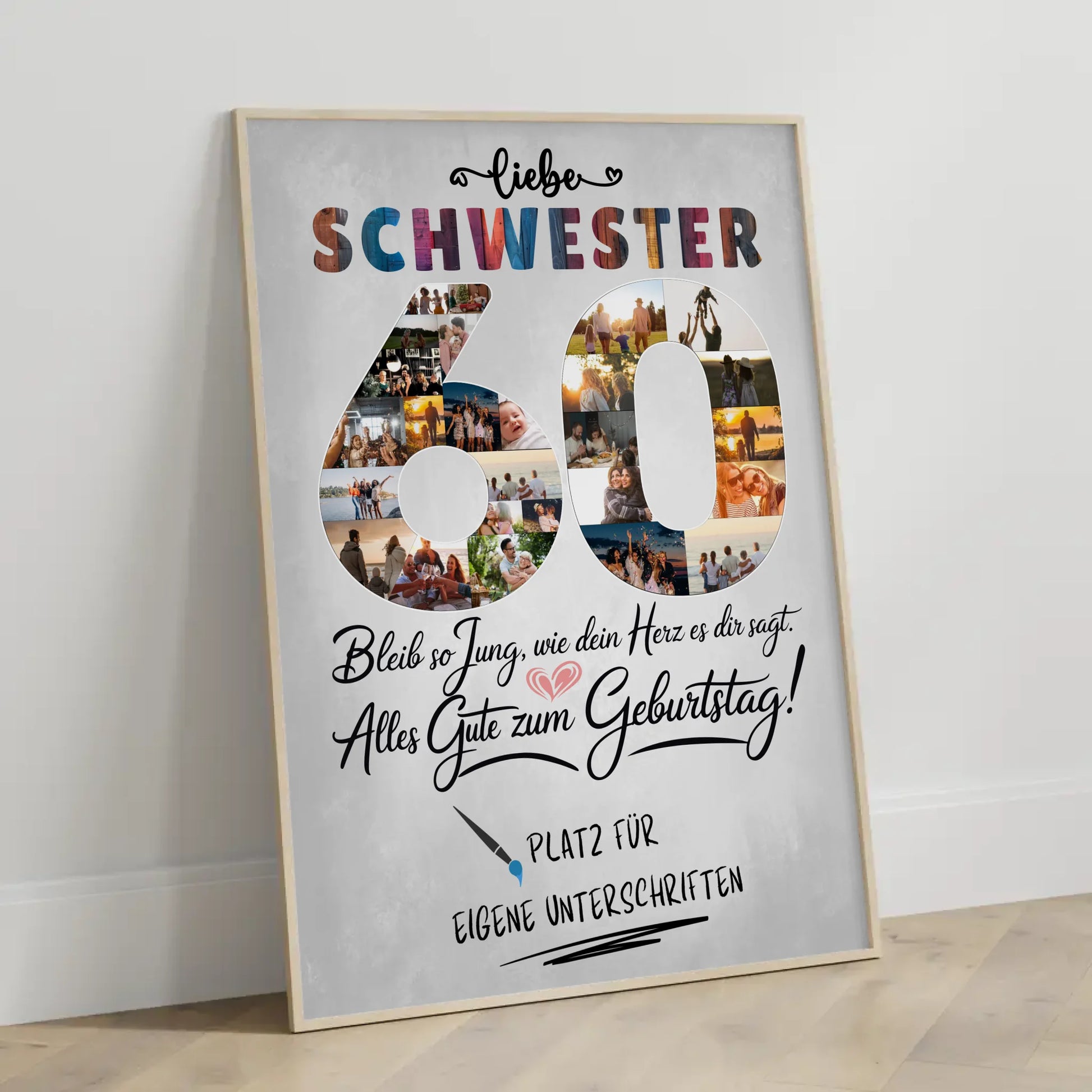 Personalisiertes Poster mit Unterschriften Schwester 60 Geburtstag Fotos