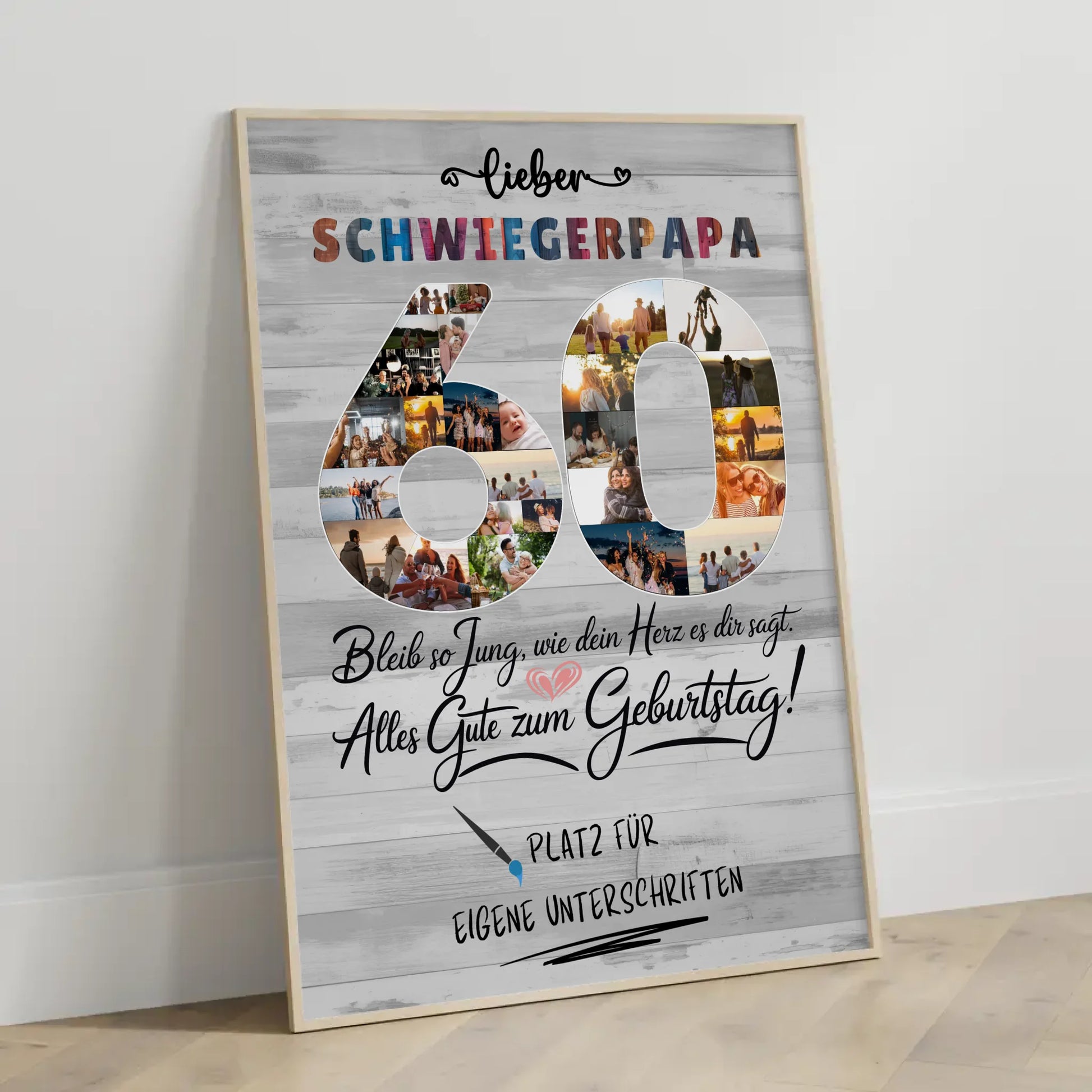 Personalisiertes Poster mit Unterschriften Schwiegerpapa 60 Geburtstag Fotos Bleib Jung