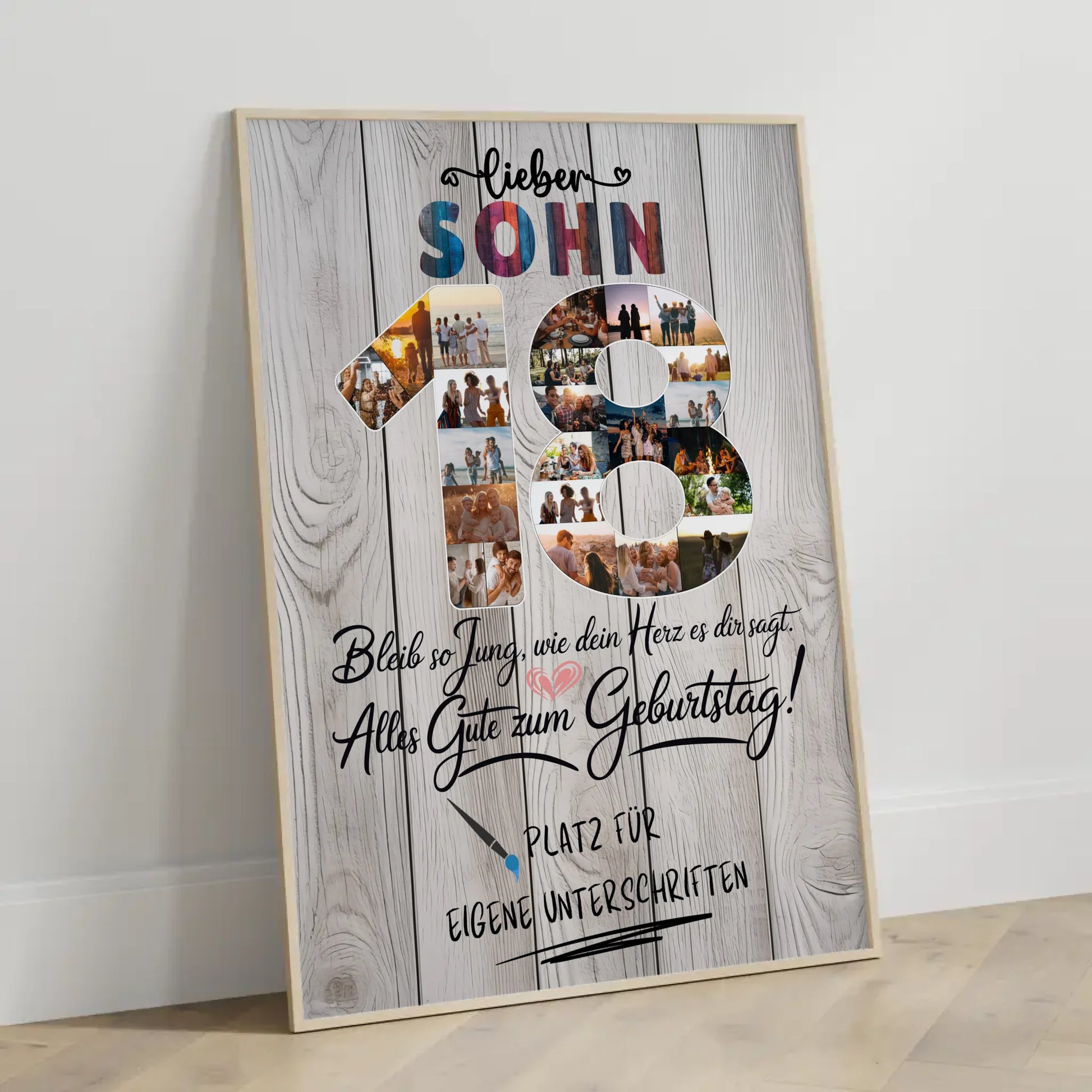 Personalisiertes Poster mit Unterschriften Sohn 18 Geburtstag Fotos