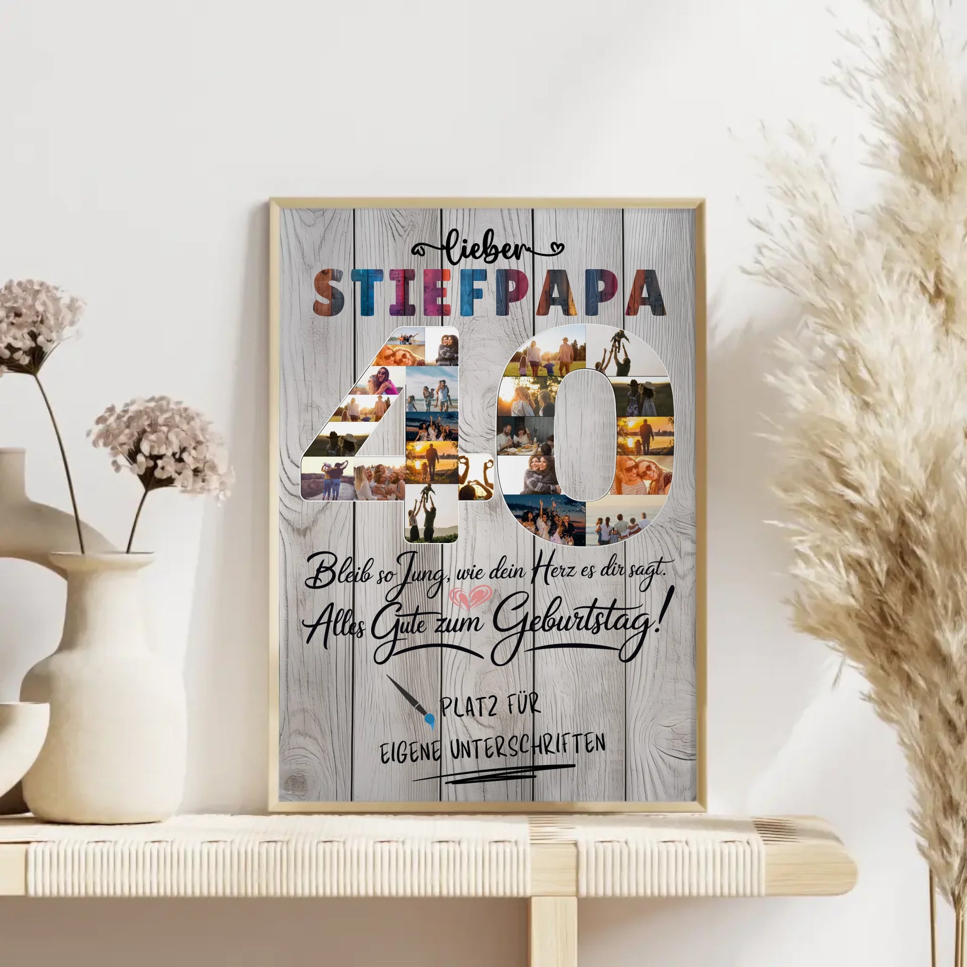 Personalisiertes Poster mit Unterschriften Stiefpapa 40 Geburtstag Fotos Bleib Jung