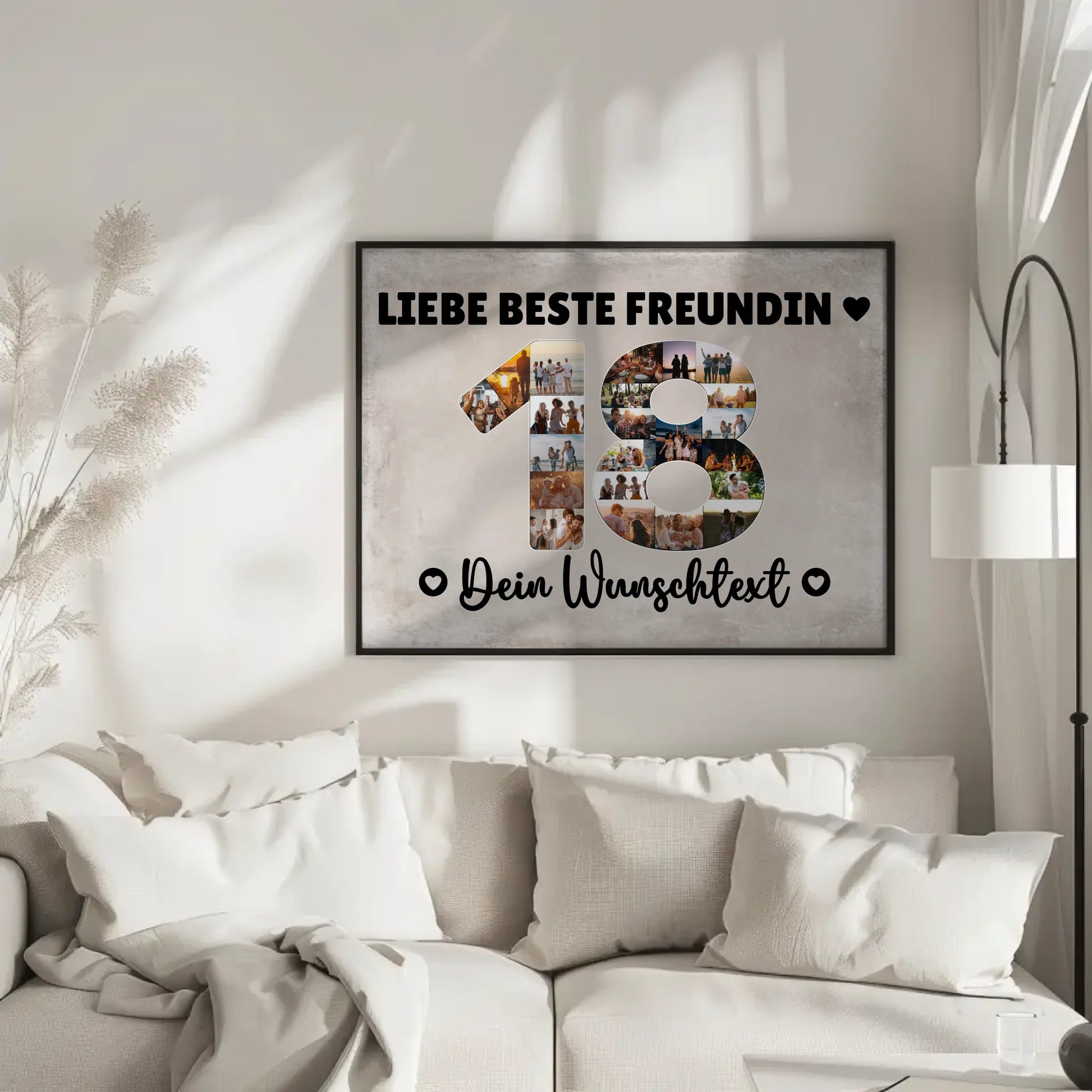 Personalisiertes Poster mit Wunschtext 18 Geburtstag Beste Freundin