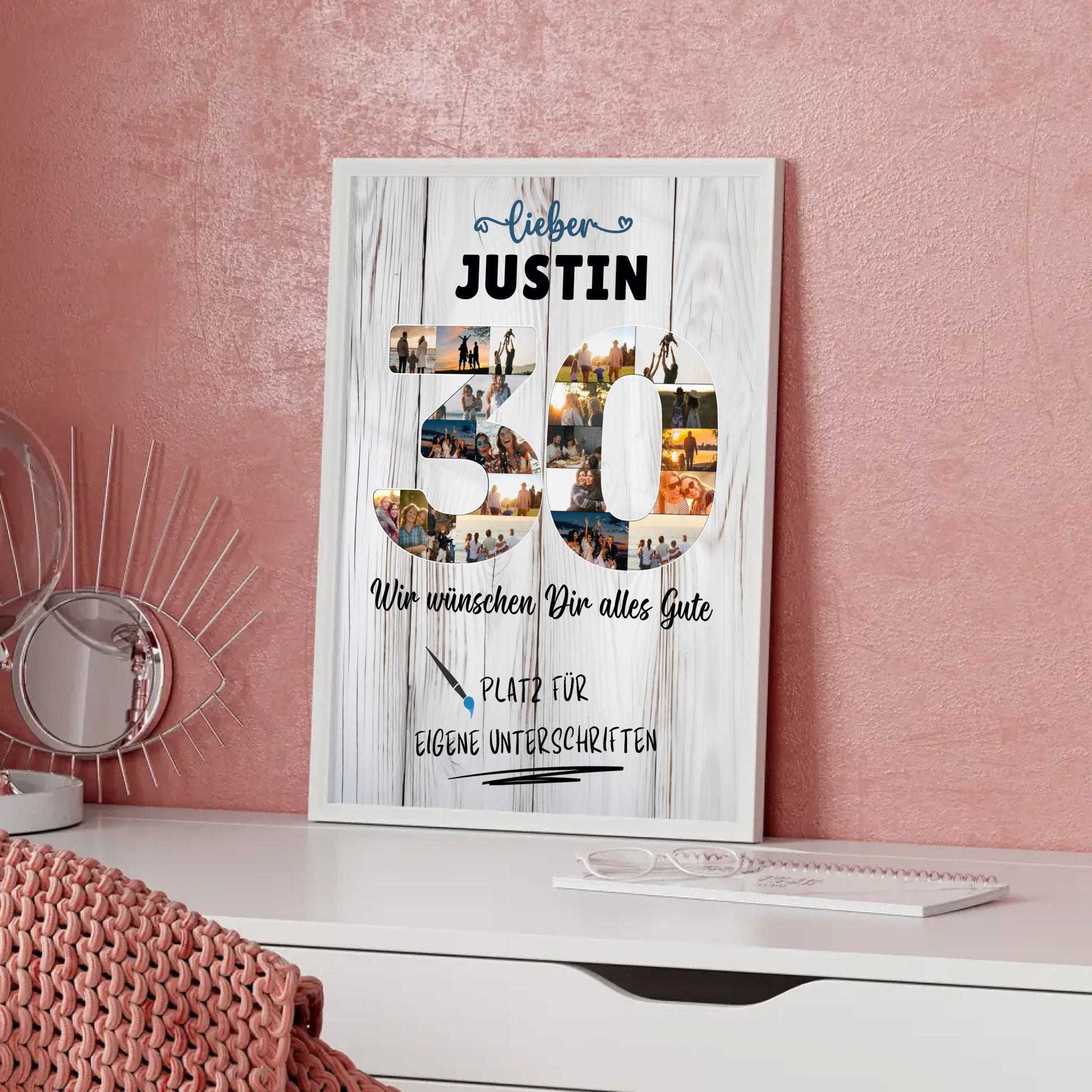 Überrasche deinen Papa, Bruder oder einen anderen besonderen Menschen in deinem Leben mit einem einzigartigen Geschenk: dem personalisierten Poster mit Wunschtext zum 30. Geburtstag! Dieses individuelle Produkt bietet dir die Möglichkeit, über 20+ Fotos einzufügen und einen eigenen Spruch oder Wunschtext zu gestalten. Mit der Option, Namen oder eigene Unterschriften hinzuzufügen, wird dieses Poster zu einem ganz persönlichen Kunstwerk, das perfekt für den speziellen Anlass ist.