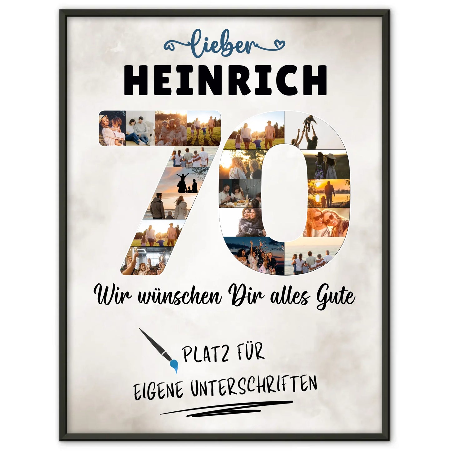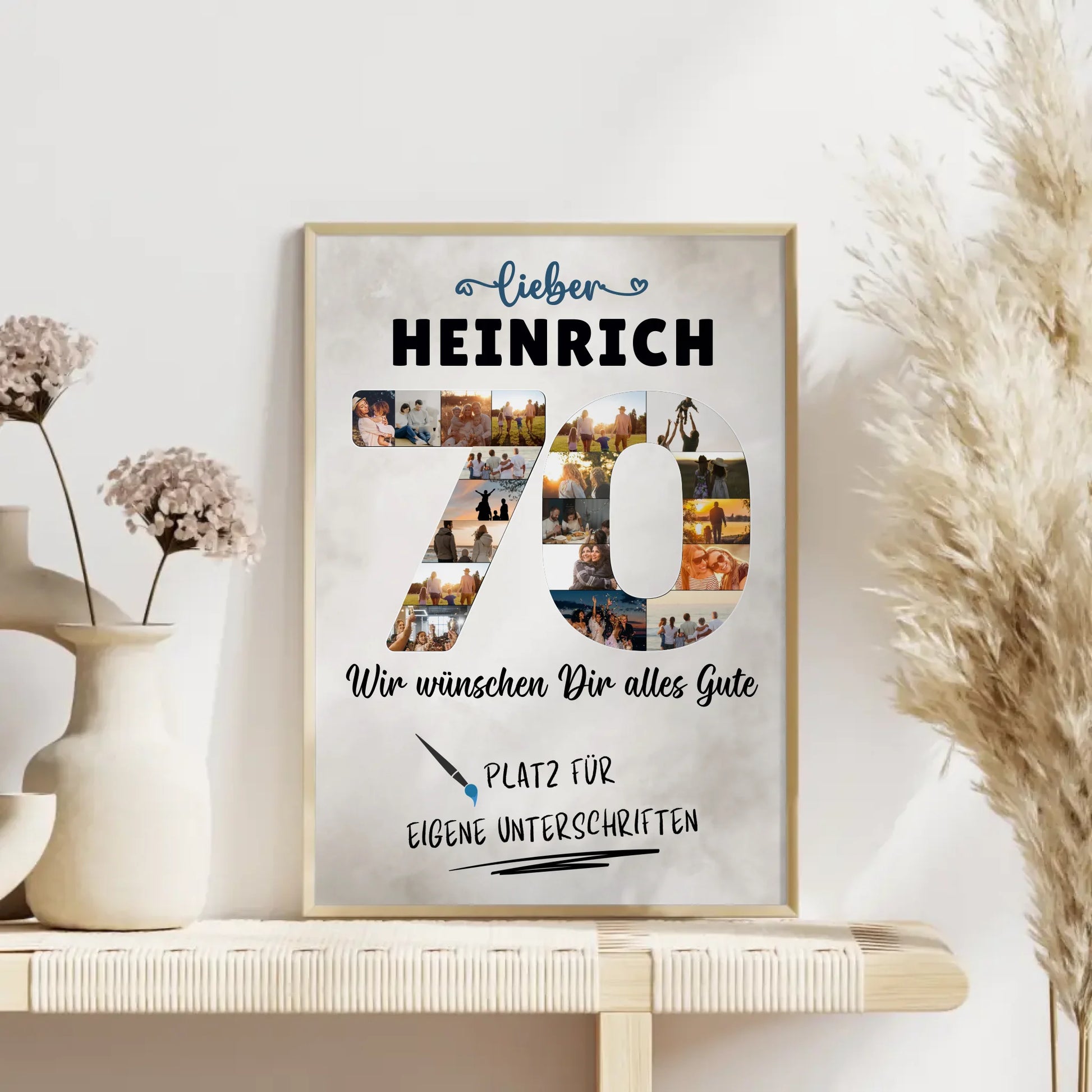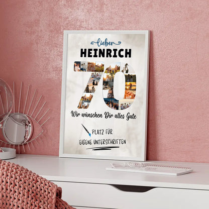 Mache den 70. Geburtstag deines Liebsten unvergesslich mit unserem personalisierten Poster! Überrasche ihn mit einem Geschenk voller persönlicher Details und wertvoller Erinnerungen!