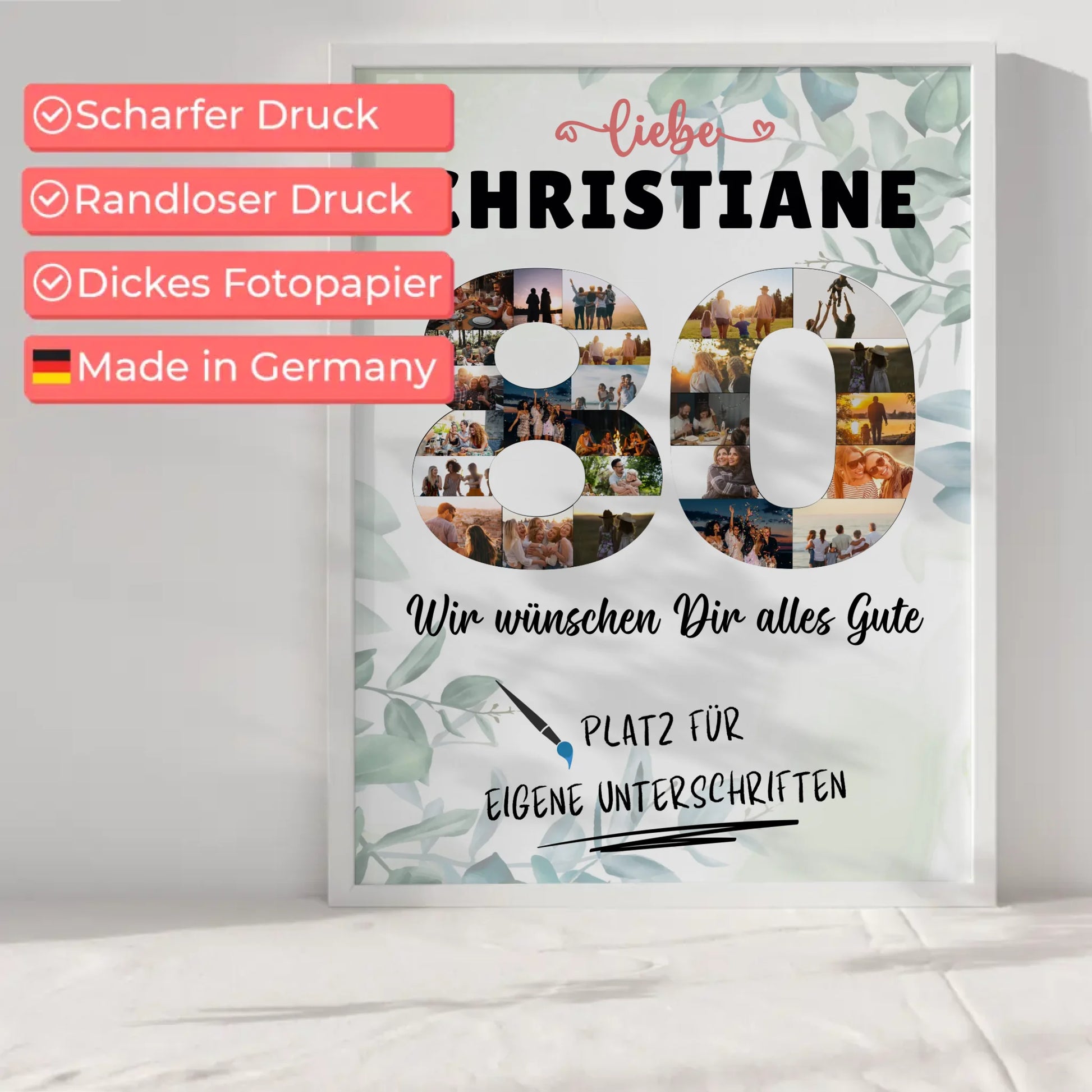 Feiere den besonderen Tag deiner Liebsten mit unserem einzigartigen personalisierten Poster! Dieses außergewöhnliche Geschenk ist speziell für den 80. Geburtstag gedacht und bringt Freude ins Herz von Oma oder Mama. Gestalte ein individuelles Kunstwerk, das viele schöne Erinnerungen weckt und perfekt zur Feier des Lebens passt.