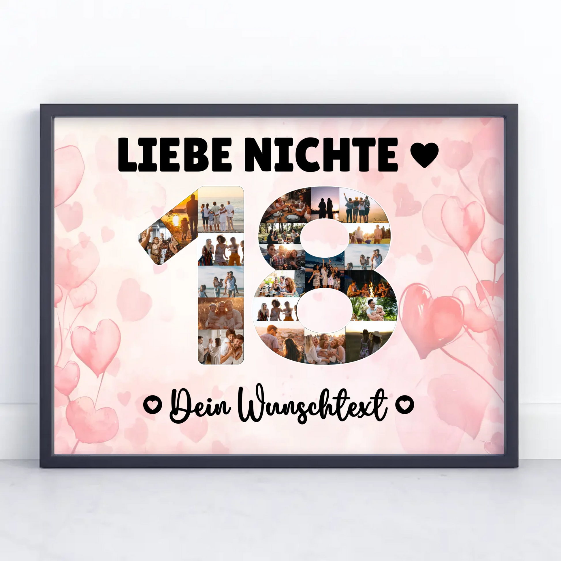 Personalisiertes Poster mit Wunschtext zum 18 Geburtstag Nichte