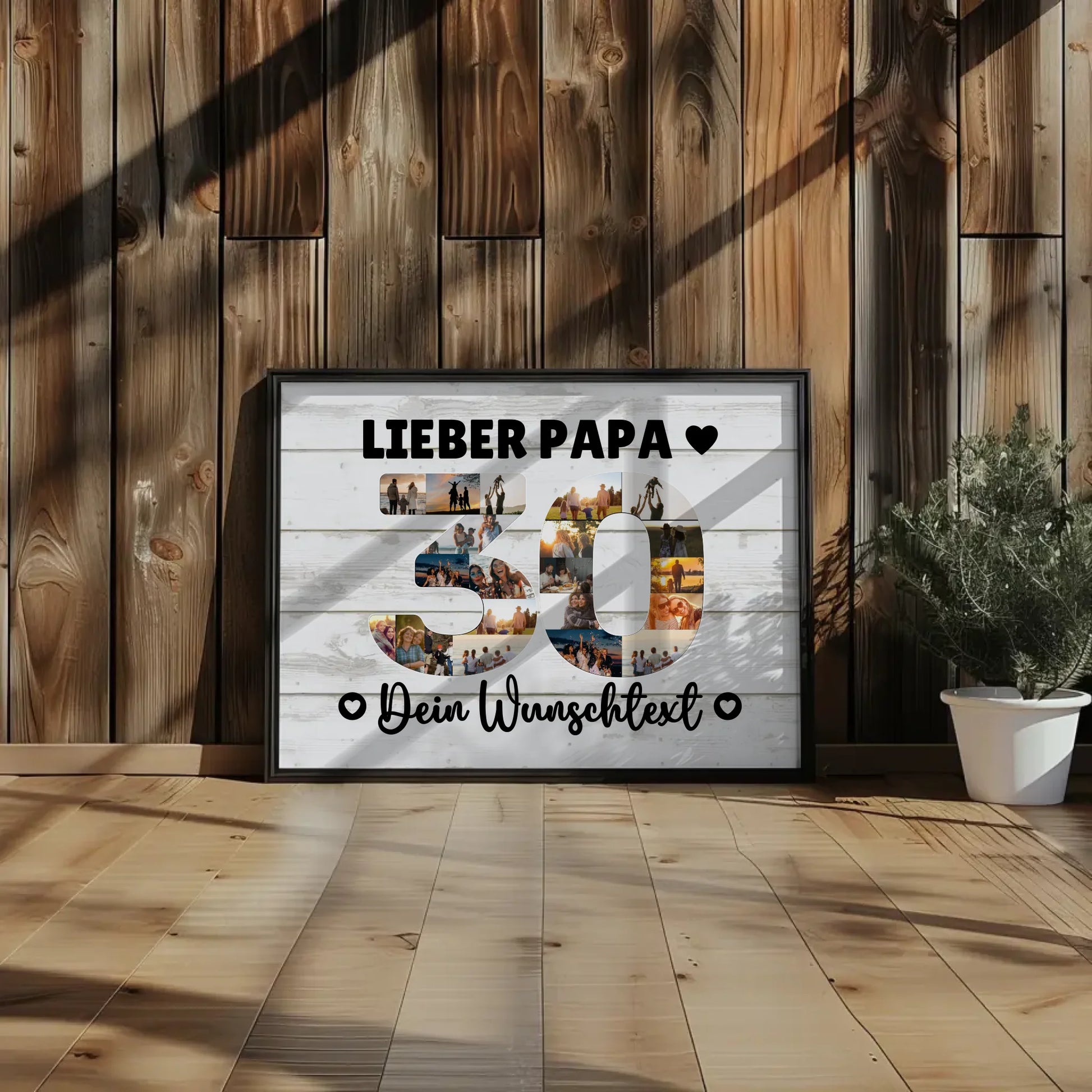 Feiere den besonderen Tag deines Papas mit einem einzigartigen und personalisierten Geschenk: dem personalisierten Poster mit Wunschtext zum 30. Geburtstag Papa. Dieses individuelle Kunstwerk lässt die Herzlichen Glückwünsche ganz persönlich werden, indem du den Namen deines Vaters, einen eigenen Spruch oder deinen ganz persönlichen Wunschtext sowie ein passendes Hintergrundbild auswählst.