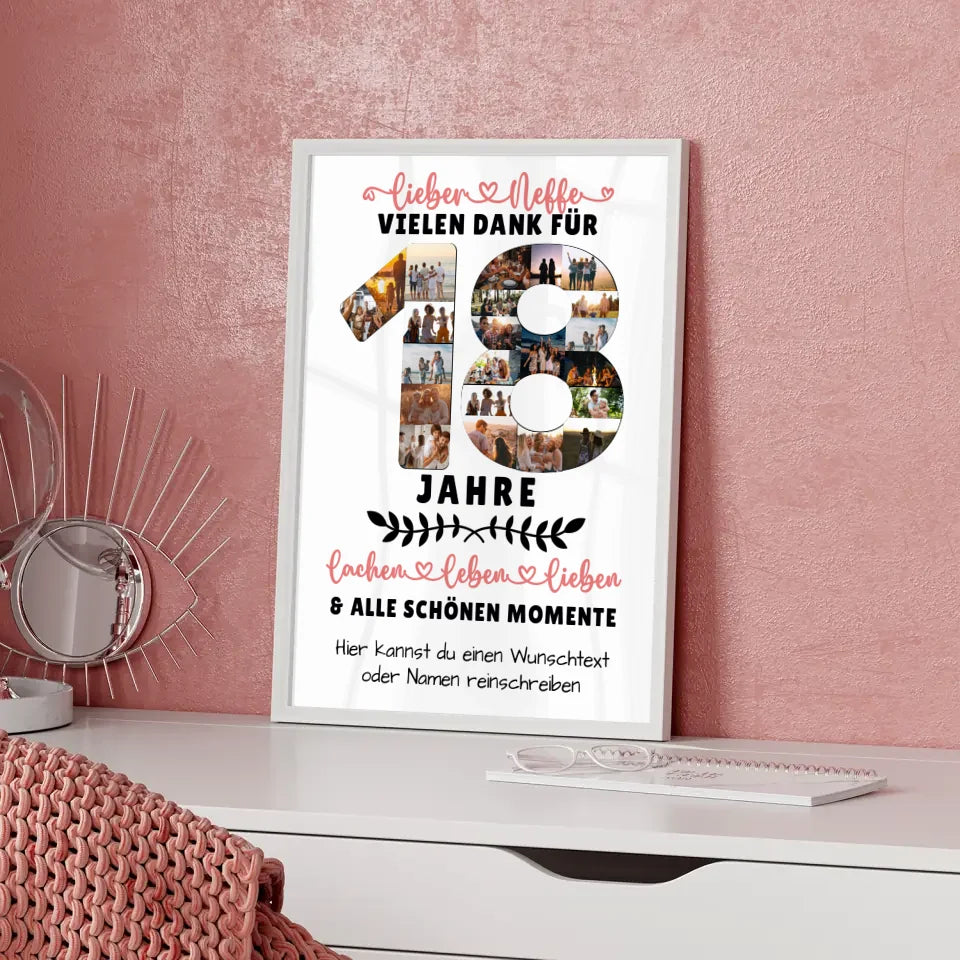 Personalisiertes Poster Neffe 18 Geburtstag Fotos Lachen Leben Wunschtext