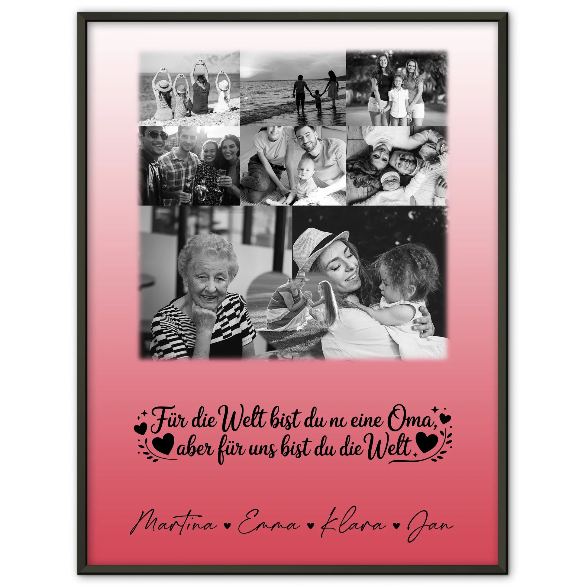 Personalisiertes Poster Oma und Opa mit 8 Fotos und Herz Du bist für mich die Welt Schwarz-Weiß