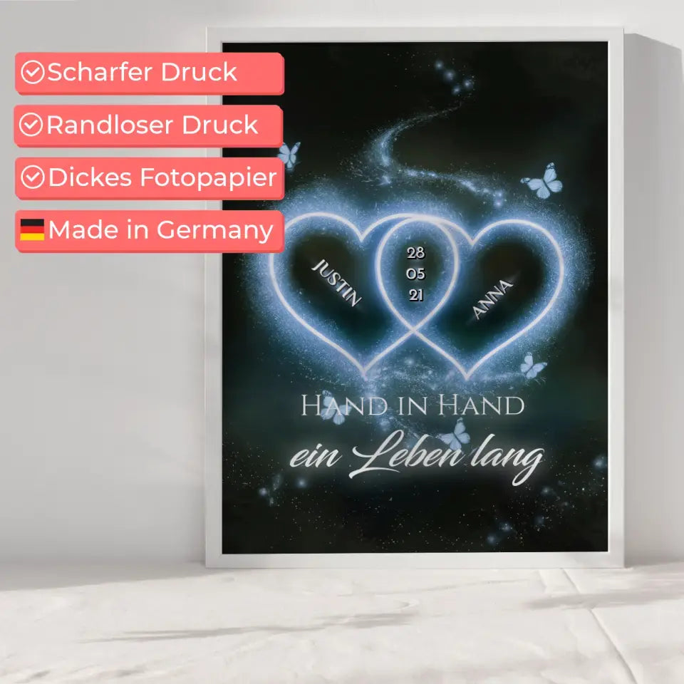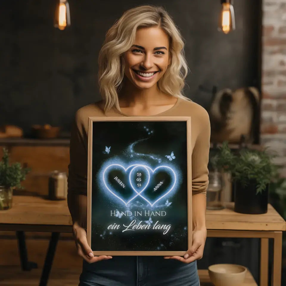 Unser Personalisiertes Poster Paar Blaue Herzen Mit Namen & Datum Liebe