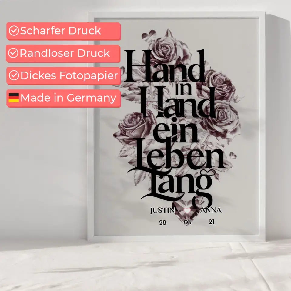 Personalisiertes Poster Paar Hand In Hand Ein Leben Lang Liebe