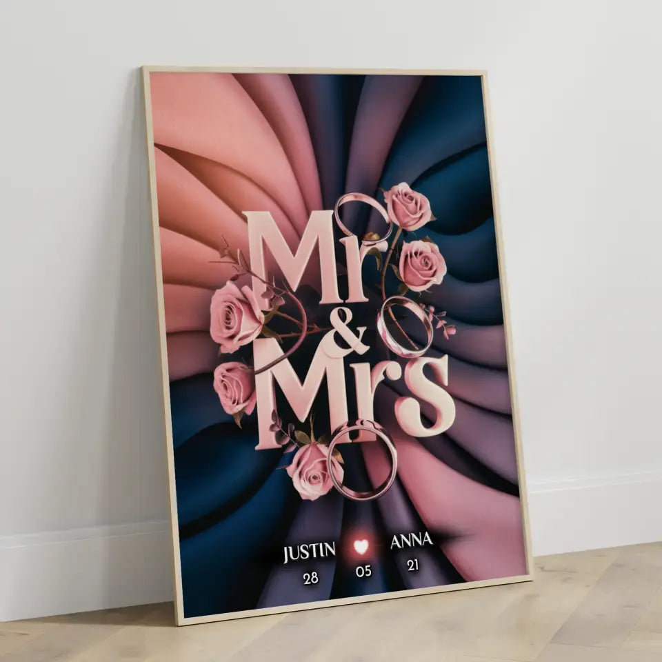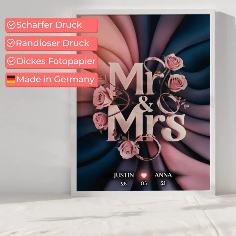 Personalisiertes Poster Paar Mr & Mrs Hochzeit & Verlobung Liebe