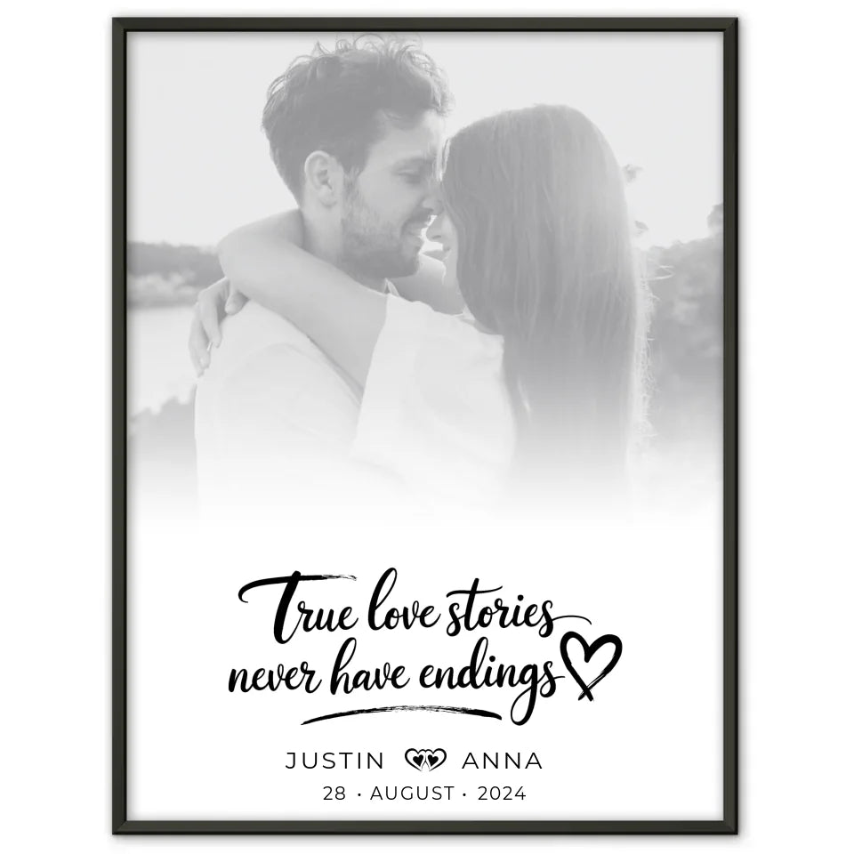 Personalisiertes Poster Paare Foto Black & White True Love Stories mit Namen