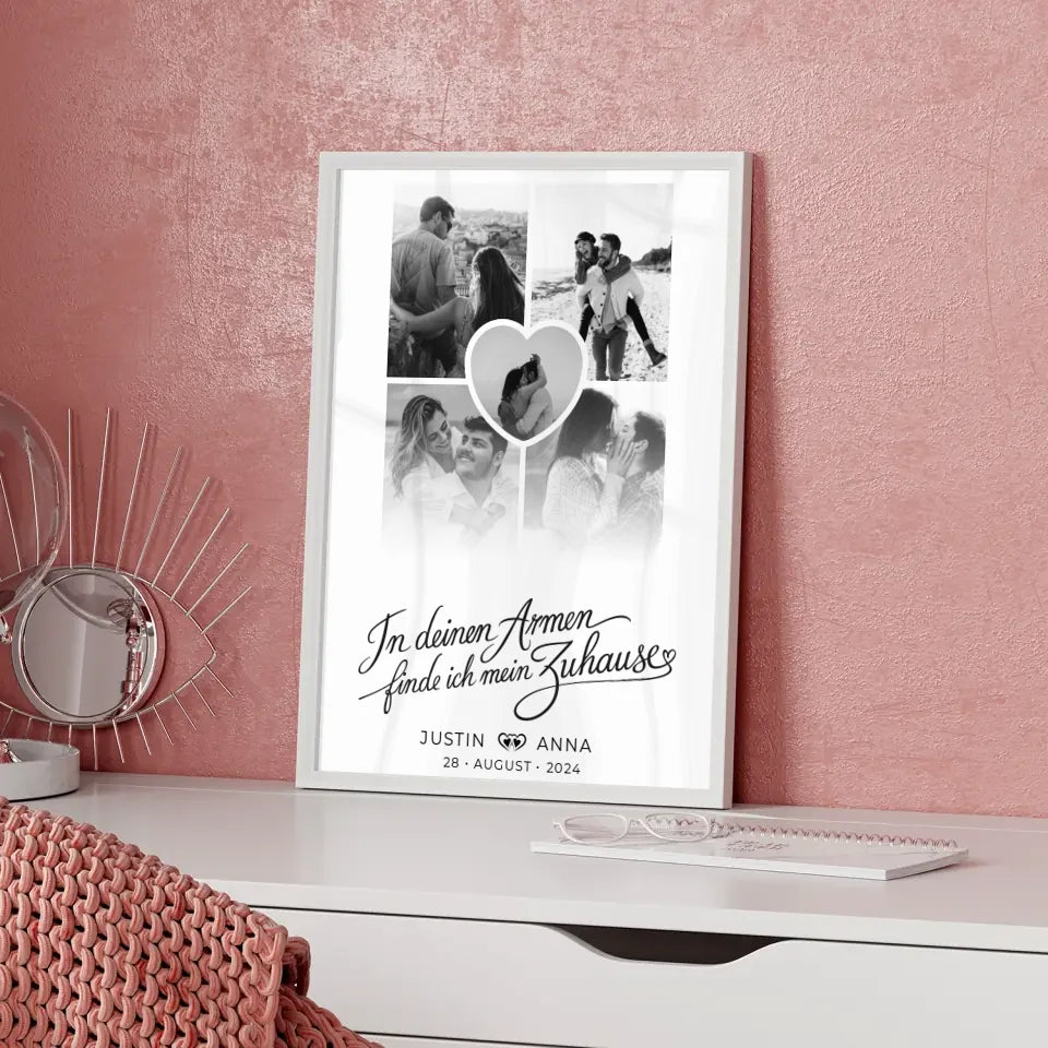 Personalisiertes Poster Paare Fotocollage 5 Fotos In Deinen Armen mit Namen
