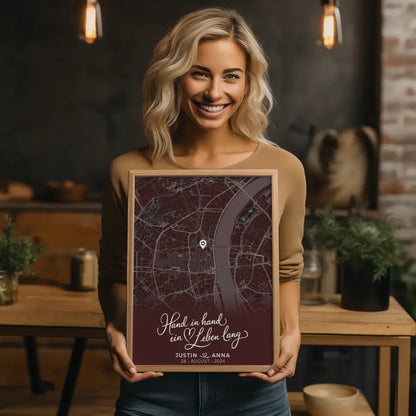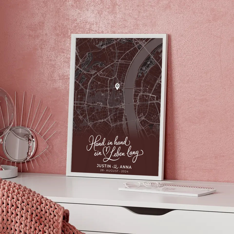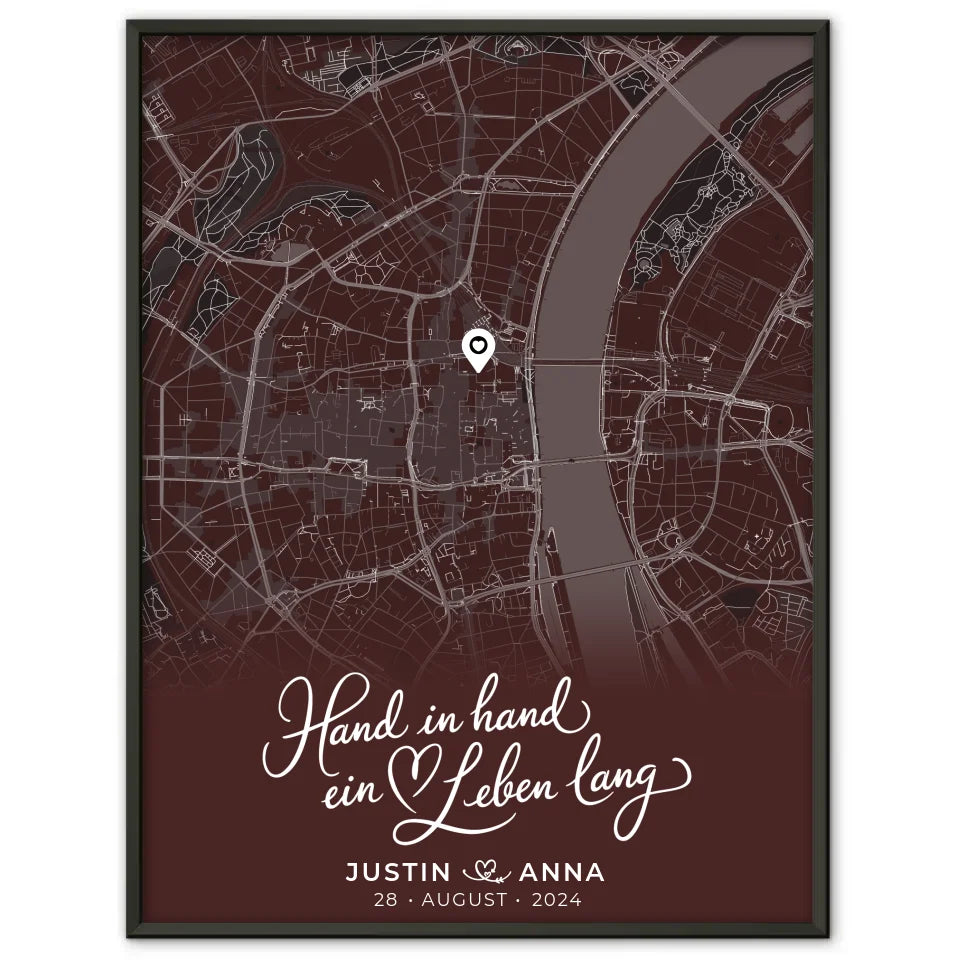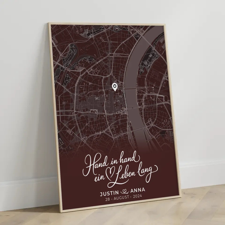 Personalisiertes Poster Paare Stadtkarte Hand In Hand für besondere Erinnerungen