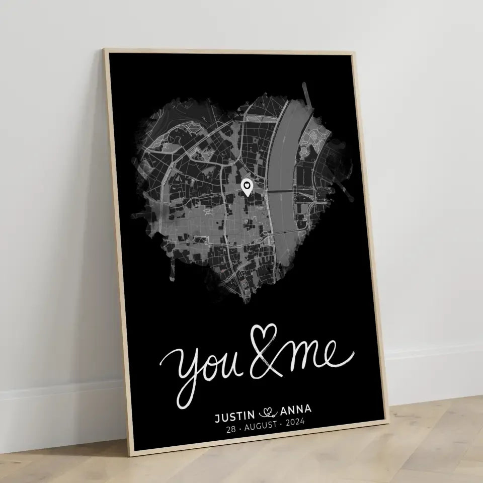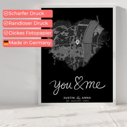 Personalisiertes Poster Paare Stadtkarte Herzform You & Me Geschenkidee
