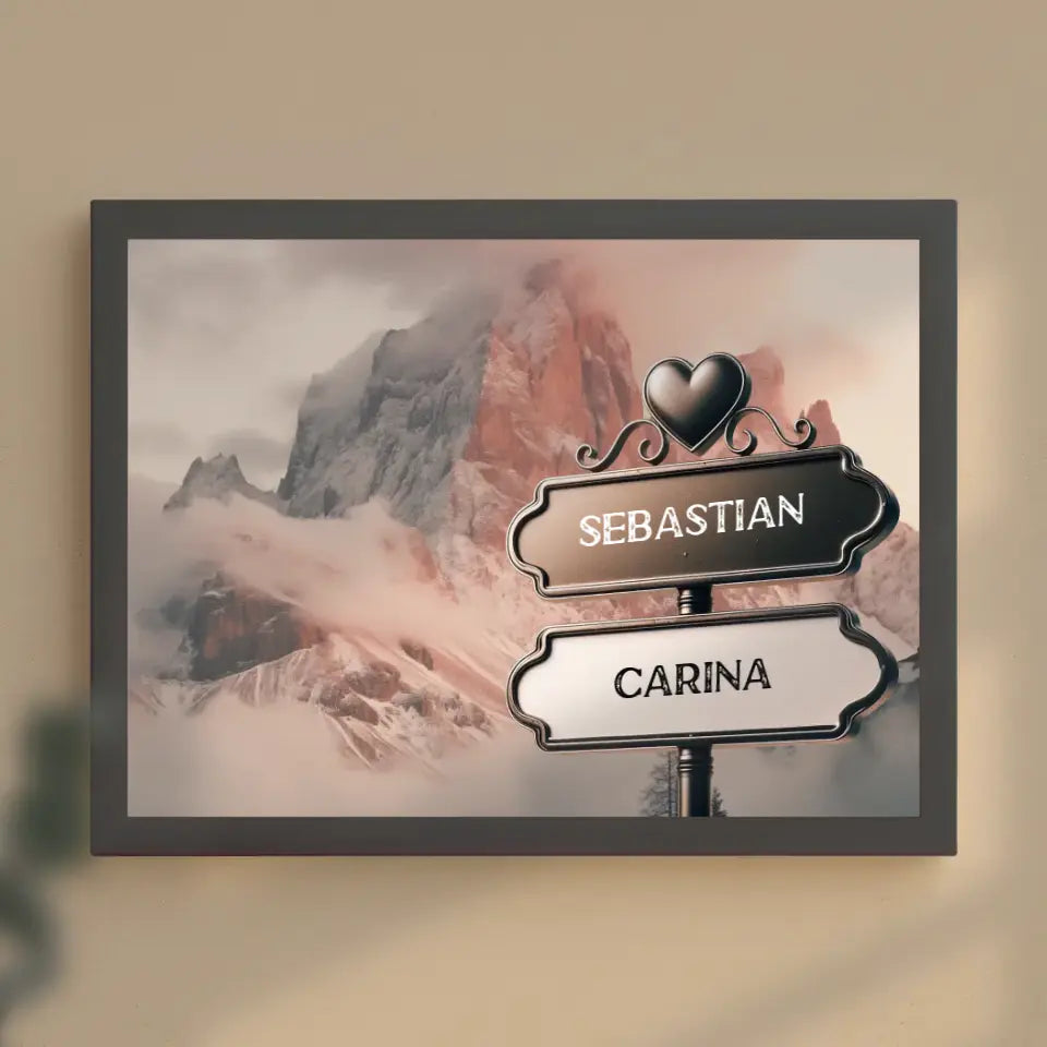 Personalisiertes Poster Paare Wegweiser Dolomiten mit Namen