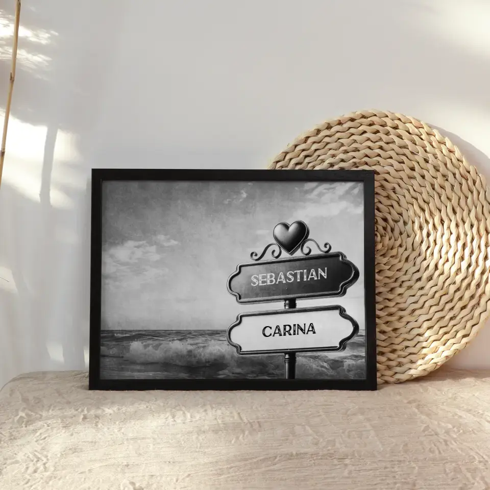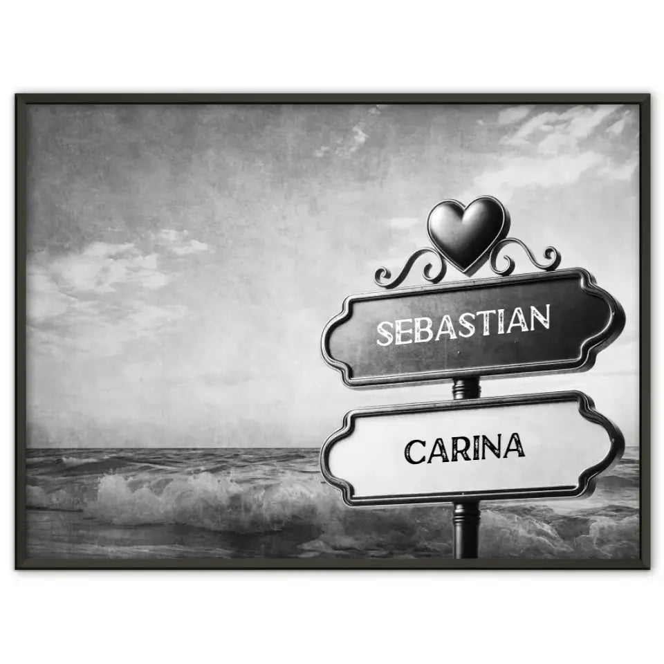Unser Personalisiertes Poster Paare Wegweiser Schwarz Weiß Wellen mit Namen