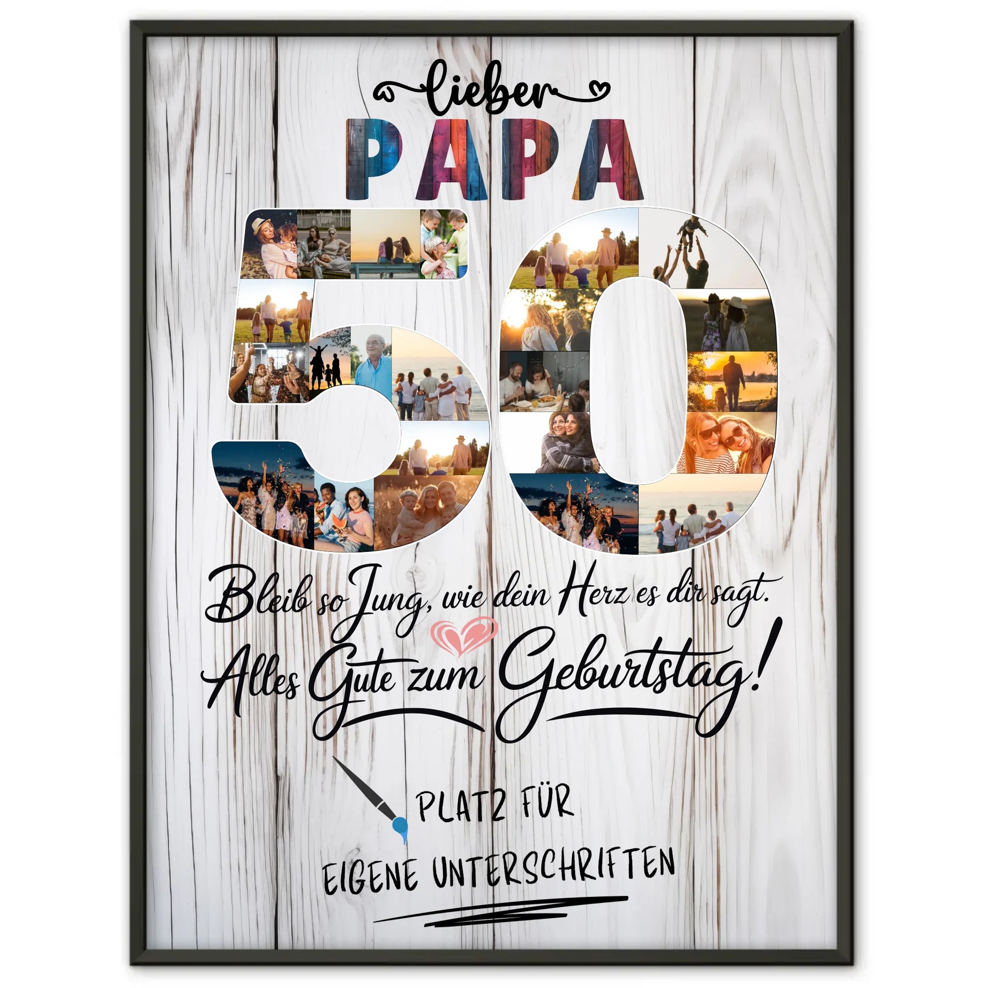Personalisiertes Poster Papa 50 Geburtstag mit Unterschriften Fotos