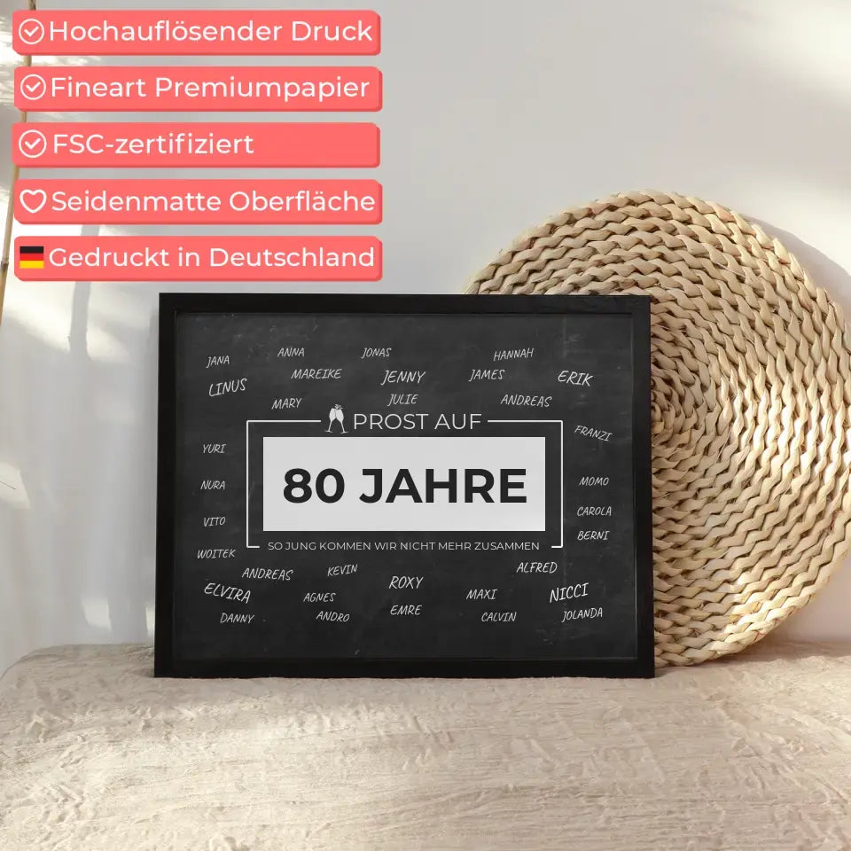 Personalisiertes Poster Prost Auf 80 Geburtstag Mit Unterschriften
