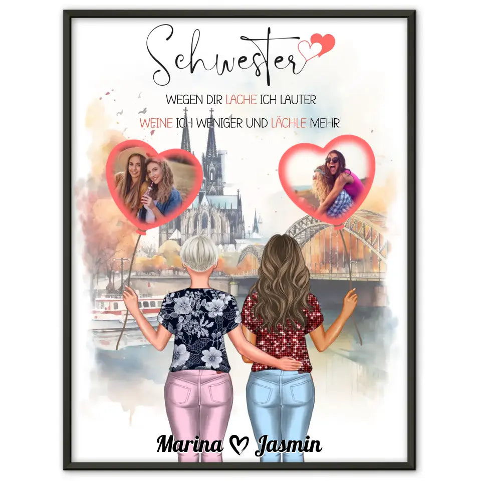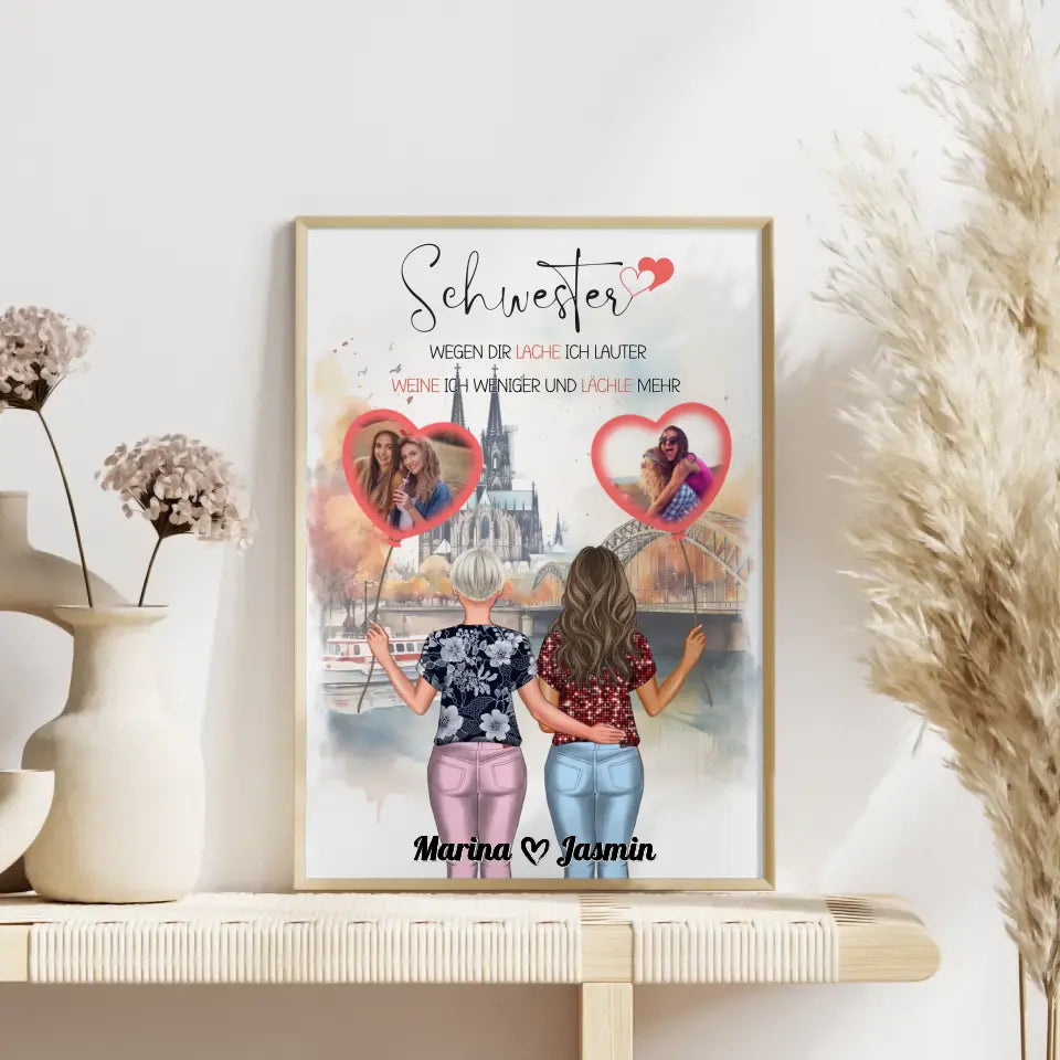 Unser Personalisiertes Poster Schwester Ich Lache Lauter Mit Namen mit Fotos