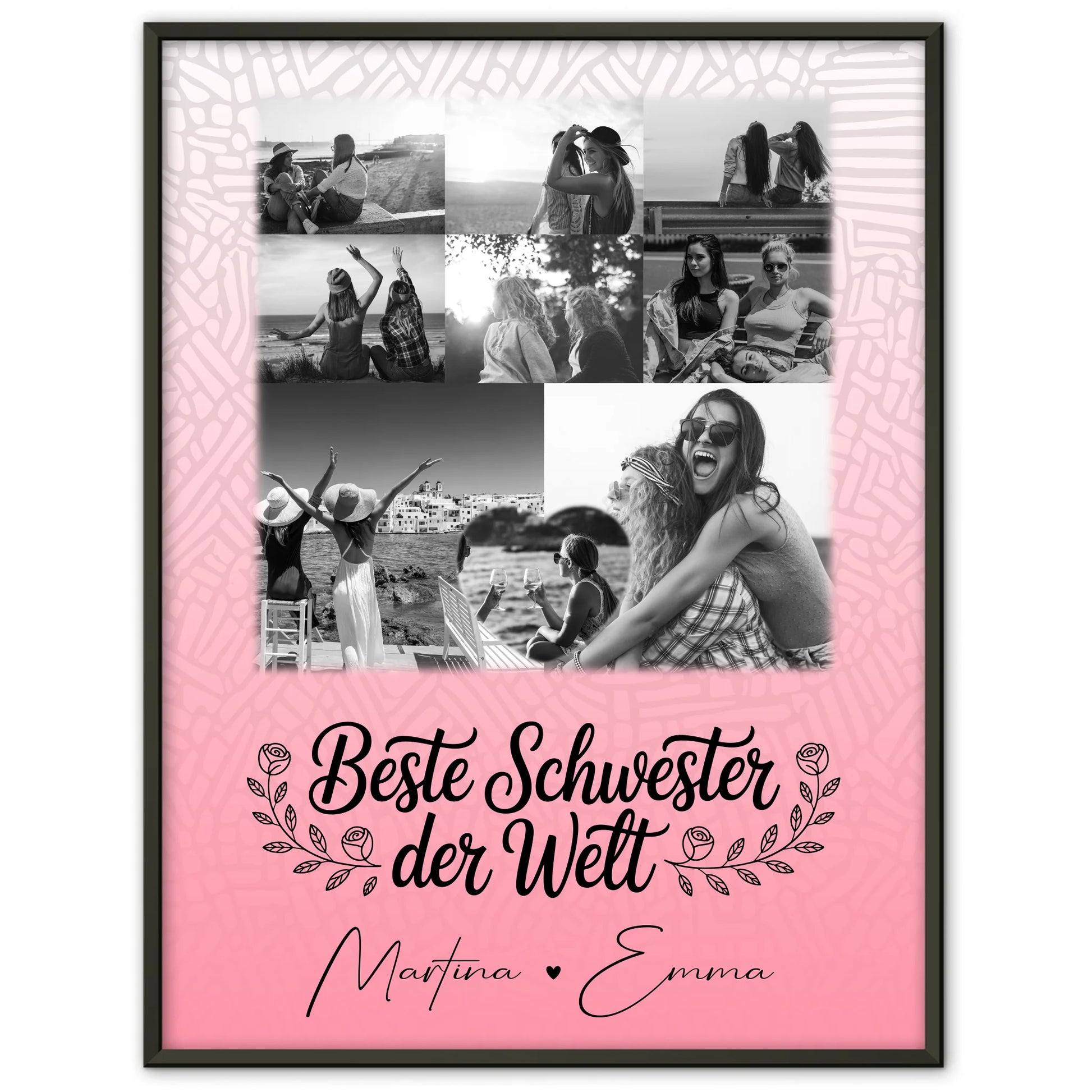 Personalisiertes Poster Schwester mit 8 Fotos und 1 Herz Foto Beste Schwester der Welt
