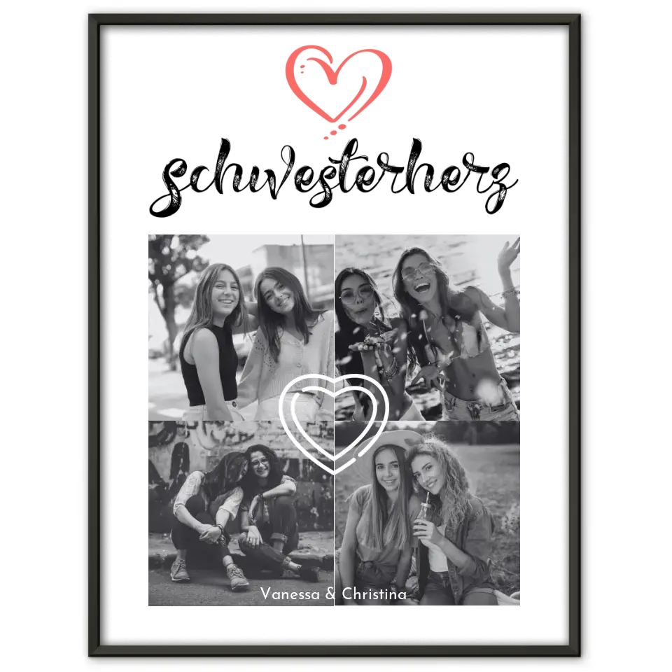 Personalisiertes Poster Schwester Schwesterherz 4 Fotos & Eigener Spruch