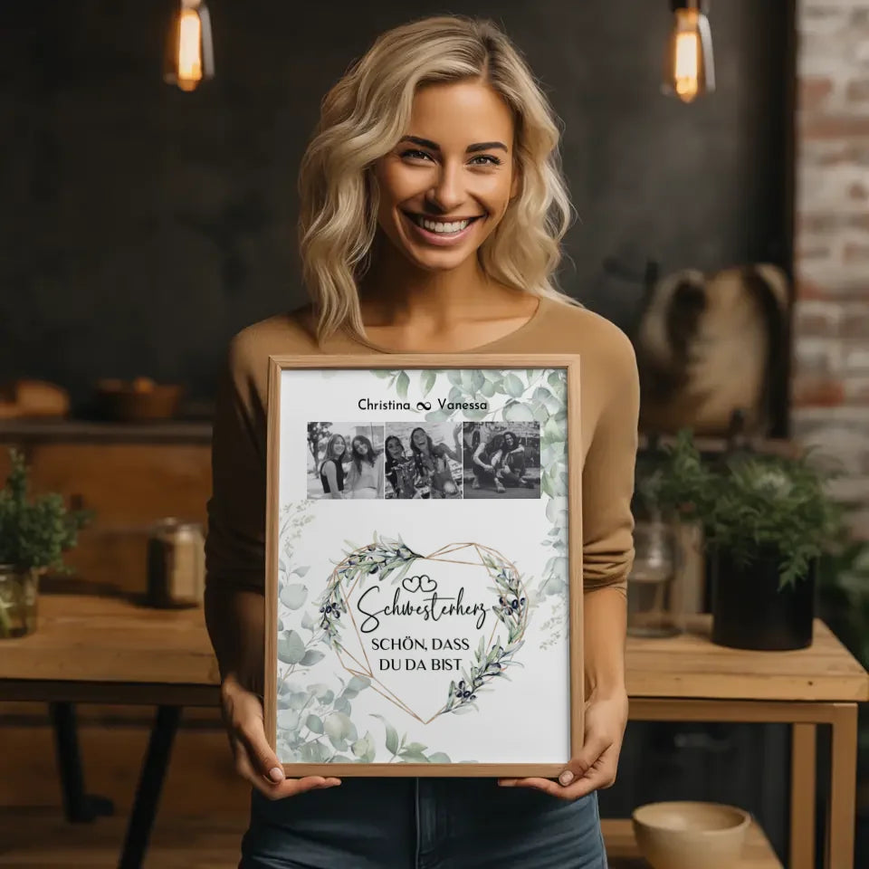 Unser Personalisiertes Poster Schwester Schwesterherz Schön dass du da bist 3 Fotos Black & White