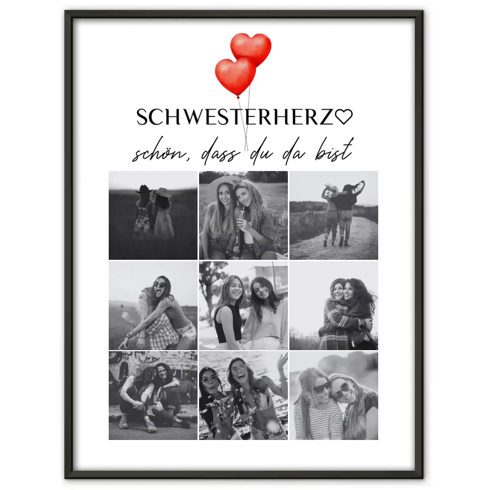 Personalisiertes Poster Schwester Schwesterherz Schön dass du da bist 9 Fotos & Wählbarer Spruch