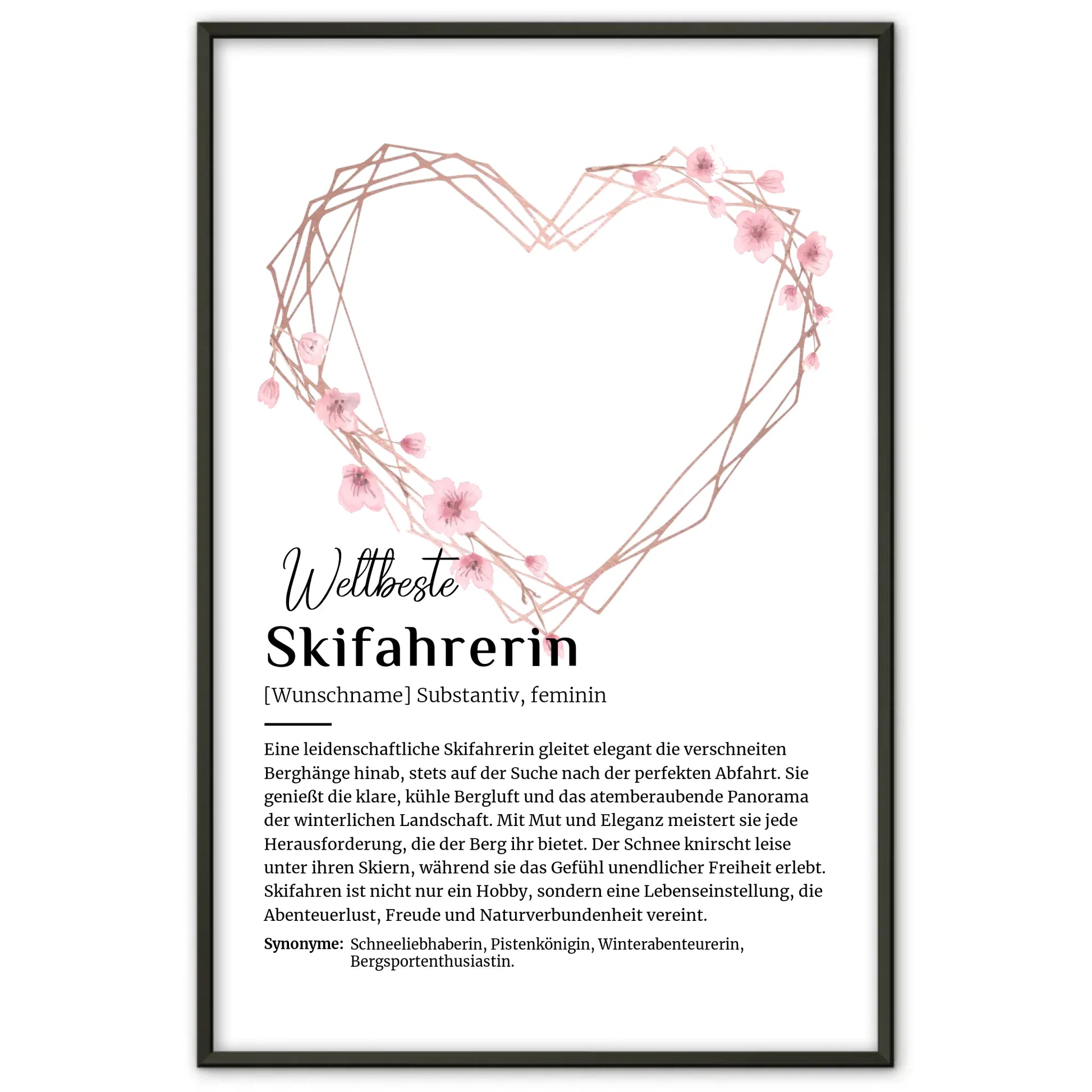 Wenn du also eine unvergessliche Freude bereiten möchtest, zögere nicht und wähle unser personalisiertes Poster Skifahrerin mit Namen Geschenk. Es ist ideal für große und kleine Anlässe – sei es ein Geburtstag, der Abschluss eines Wintersportkurses oder einfach als liebevolles Präsent für einen Ski-Urlaub – dieses Poster wird Herzen höher schlagen lassen.
