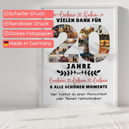 Personalisiertes Poster Sohn 20 Geburtstag Fotos Lachen Leben Wunschtext