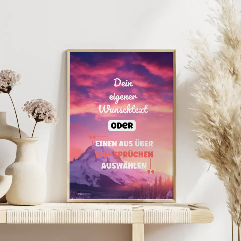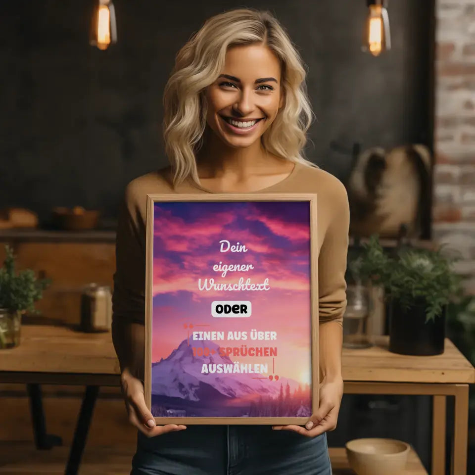 Du kannst bei diesem schönen Design Eigener Spruch, Hintergrundbild & Wunschtext personalisieren.