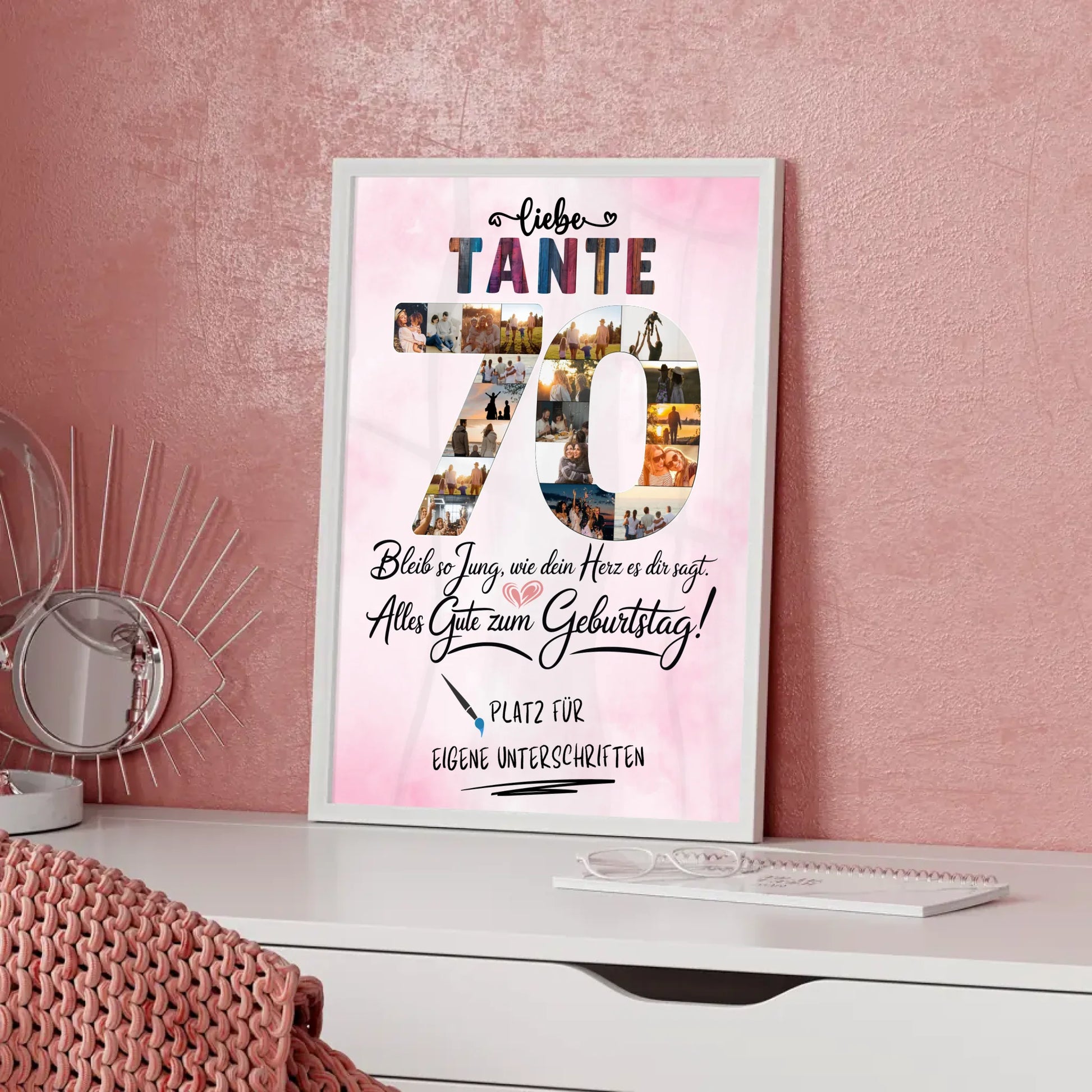 Personalisiertes Poster Tante 70 Geburtstag mit Unterschriften Fotos