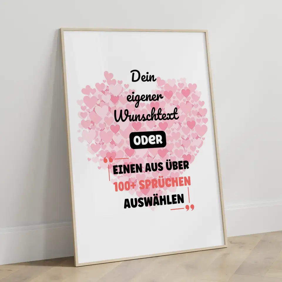 Unser Personalisiertes Poster tausend pinke Herzen mit Wunschtext & Hintergründen