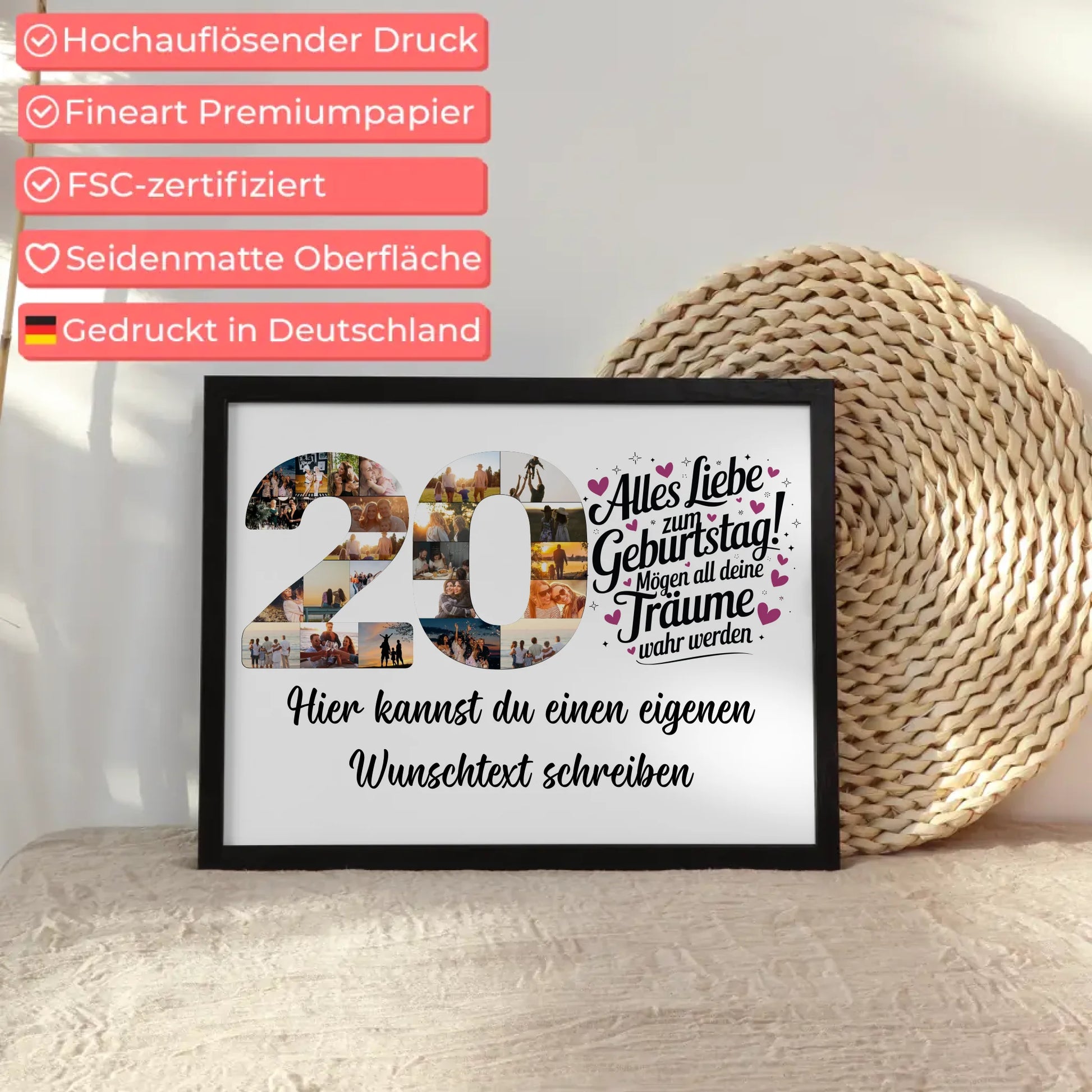 Personalisiertes Poster Wunschtext 20 Geburtstag Deine Träume