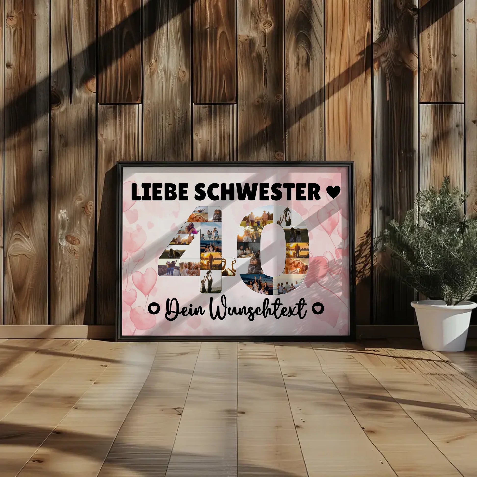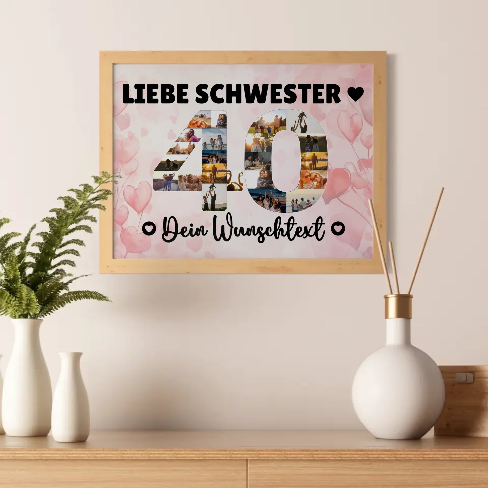 Personalisiertes Poster Wunschtext 40 Geburtstag Schwester