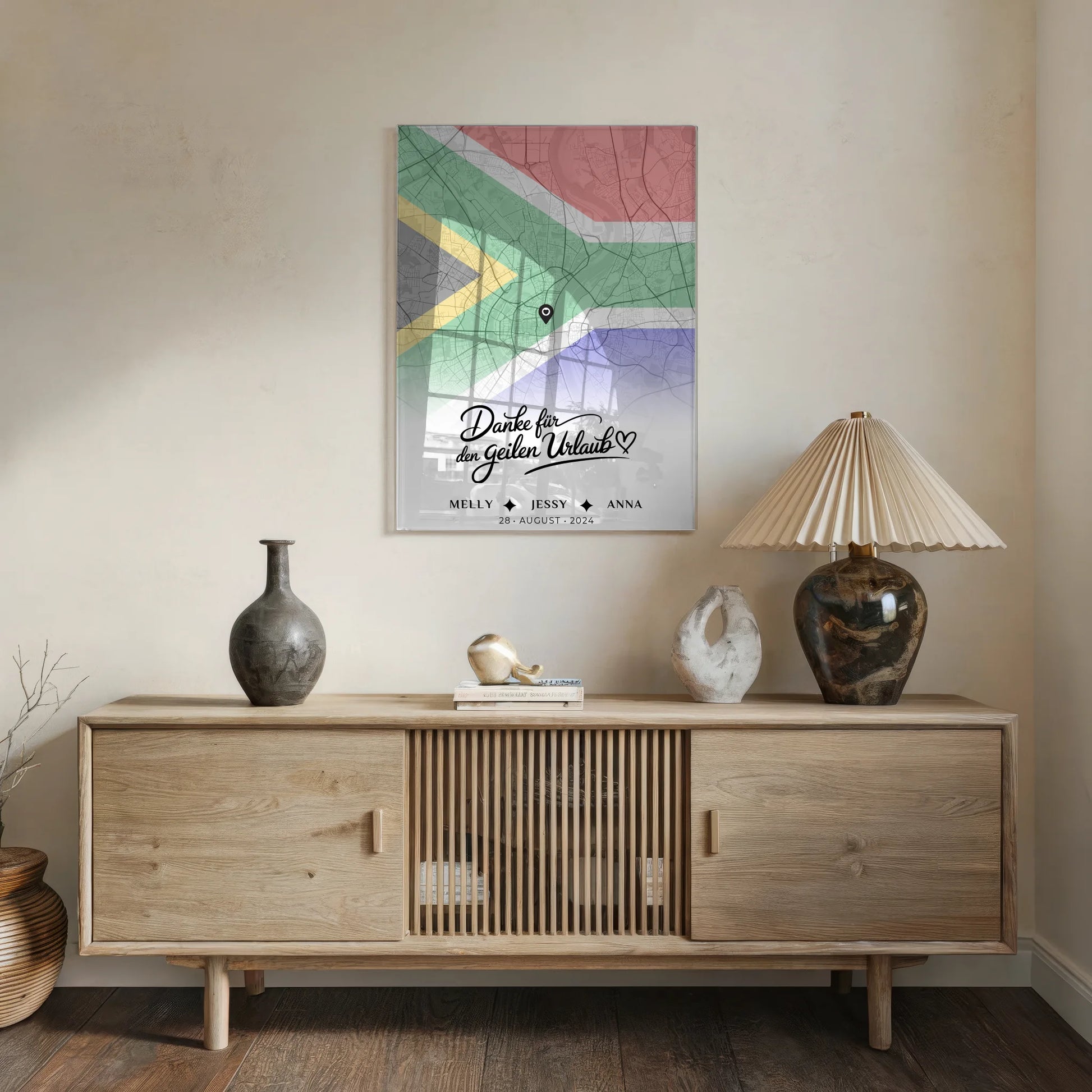 Personalisiertes Stadtkarte Acrylglas Bild Freundinnen Südafrika Urlaub