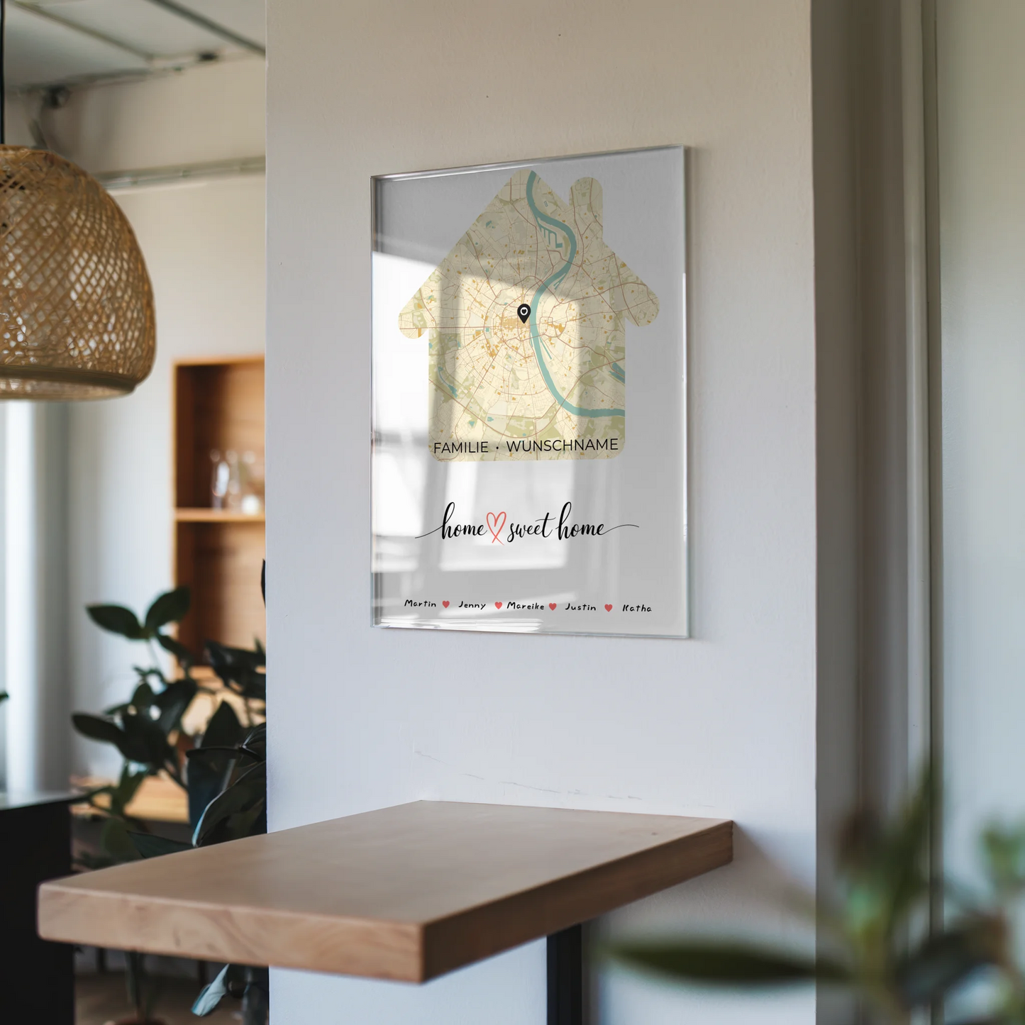 Personalisiertes Stadtkarte als Acrylglas Bild Home Sweet Home