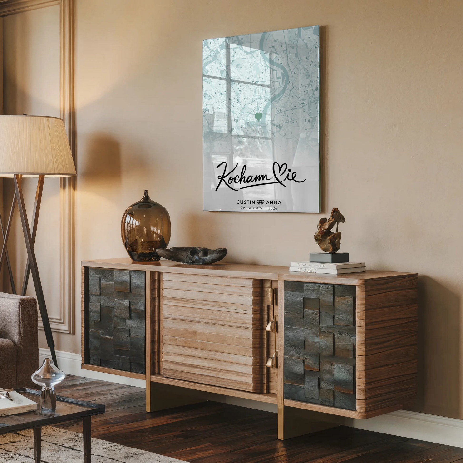 Entdecke das personalisierte Stadtkarten Acrylglas Bild für Paare