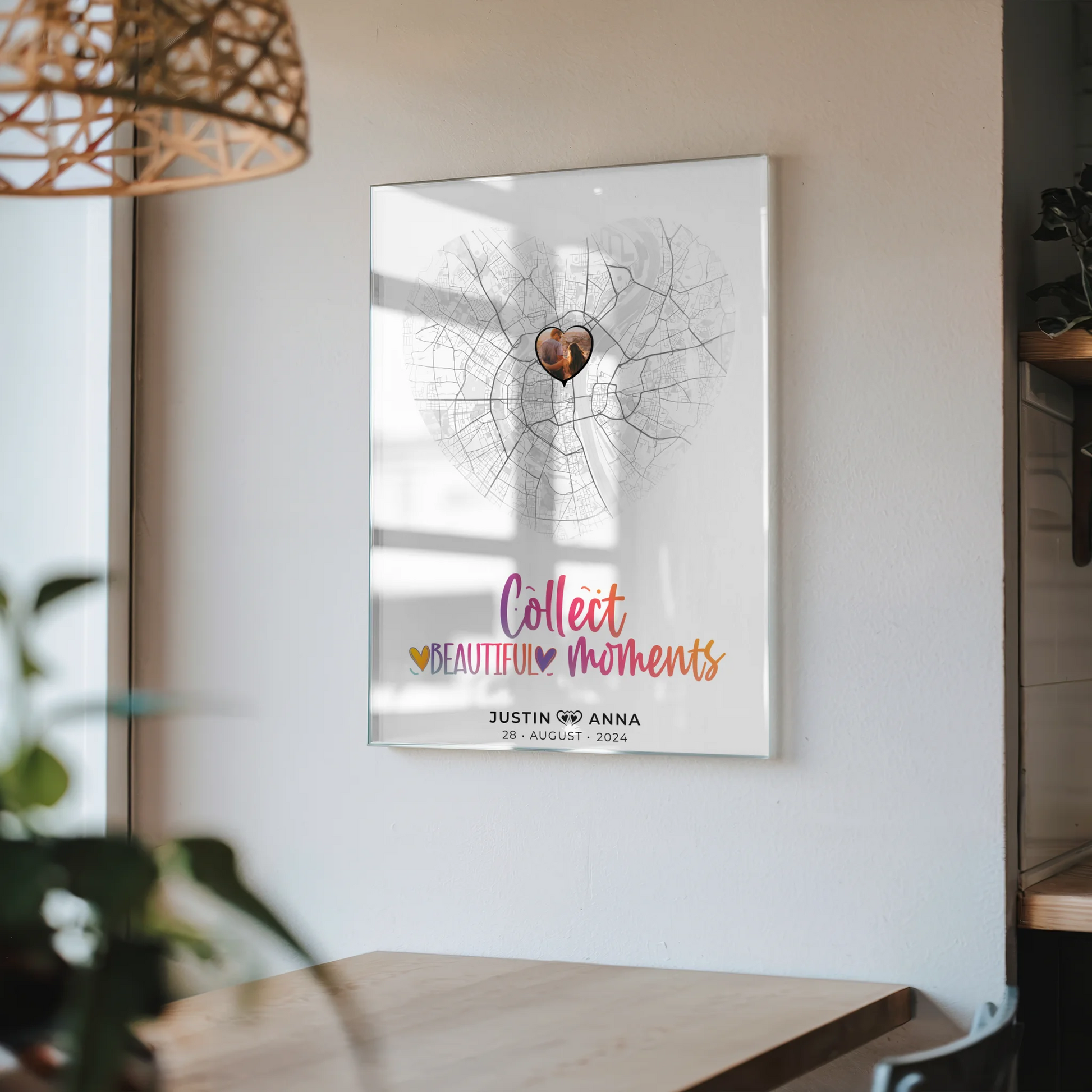 Personalisiertes Stadtkarten Acrylglas Bild Paare Herz Collect Beautyful Moments