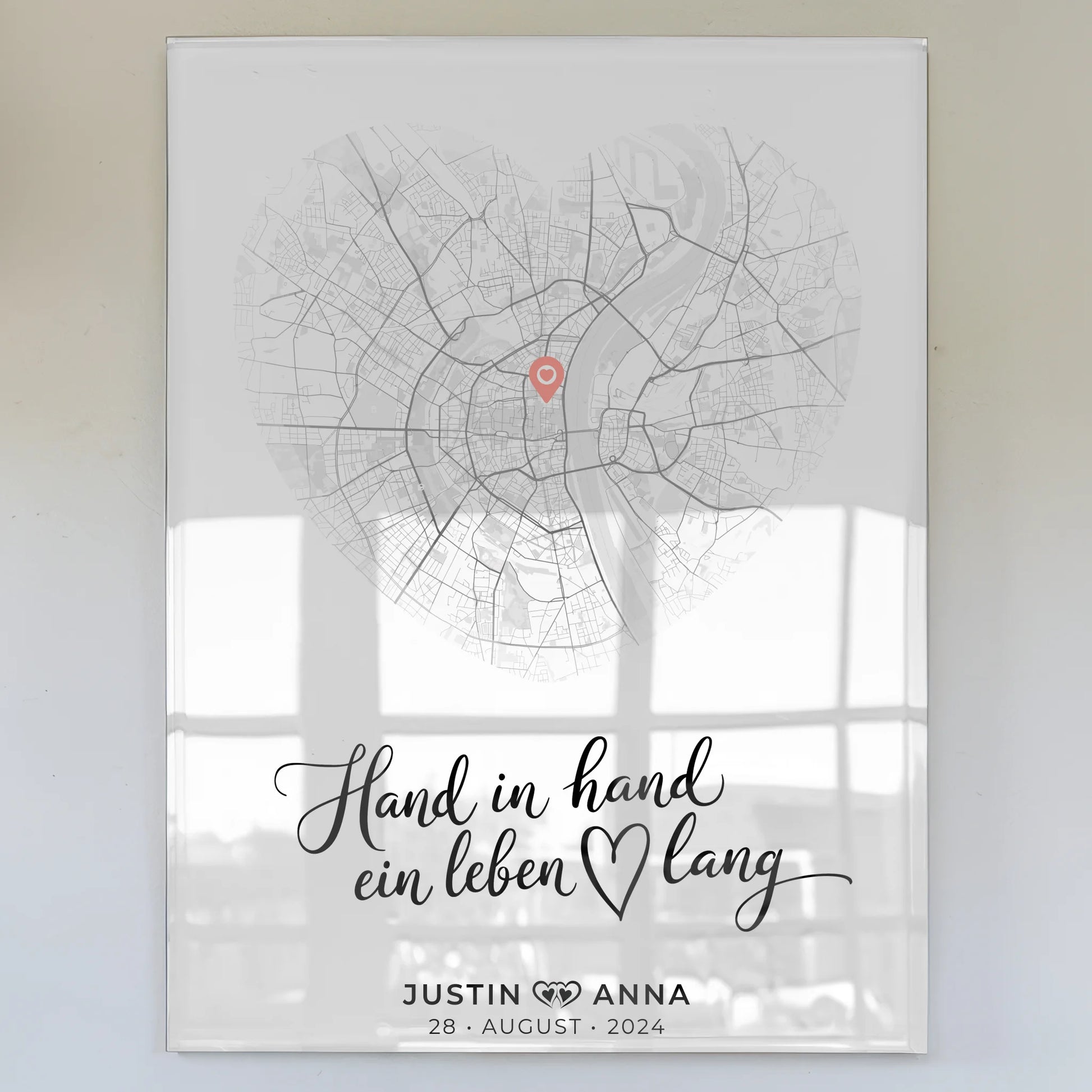 Personalisiertes Stadtkarten Acrylglas Bild Paare Herz Hand In Hand Ein Leben Lang