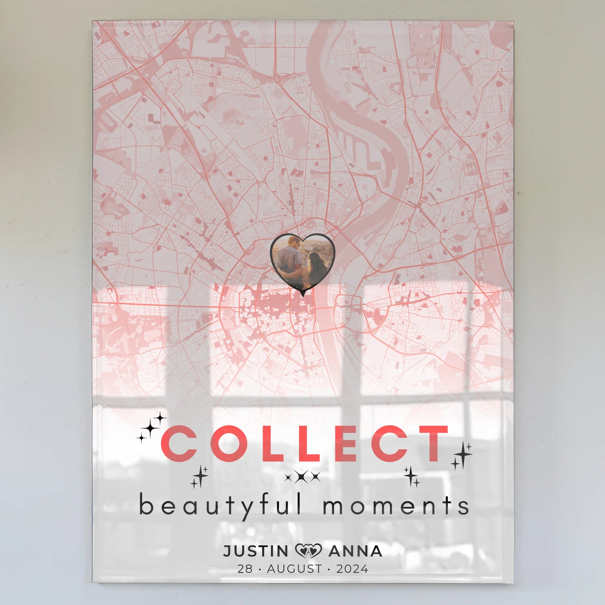 Besondere Erinnerungen mit dem personalisierten Stadtkarten Acrylglas Bild Paare Roserot