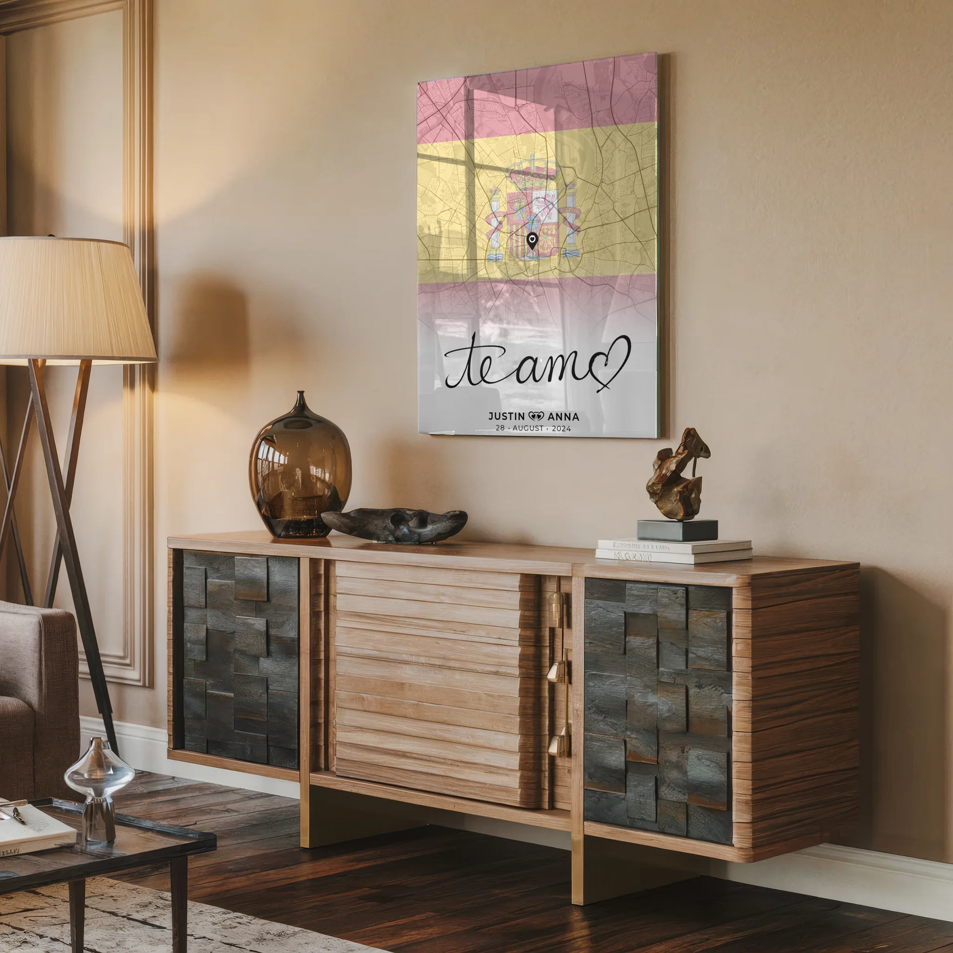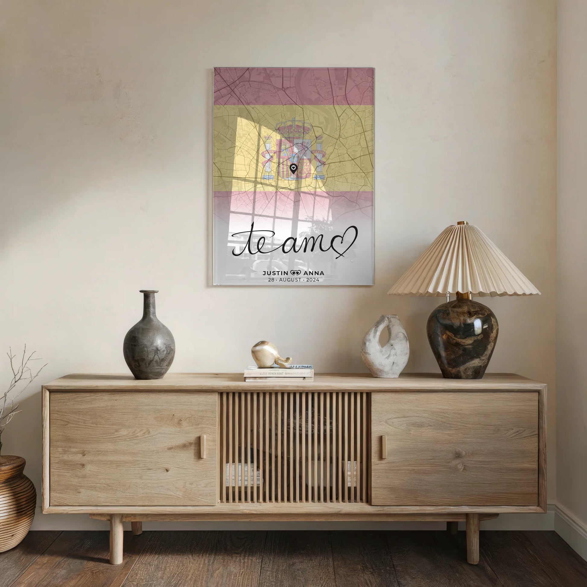 Personalisiertes Stadtkarten als Acrylglas Bild für Paare Te Amo Urlaub Spanien
