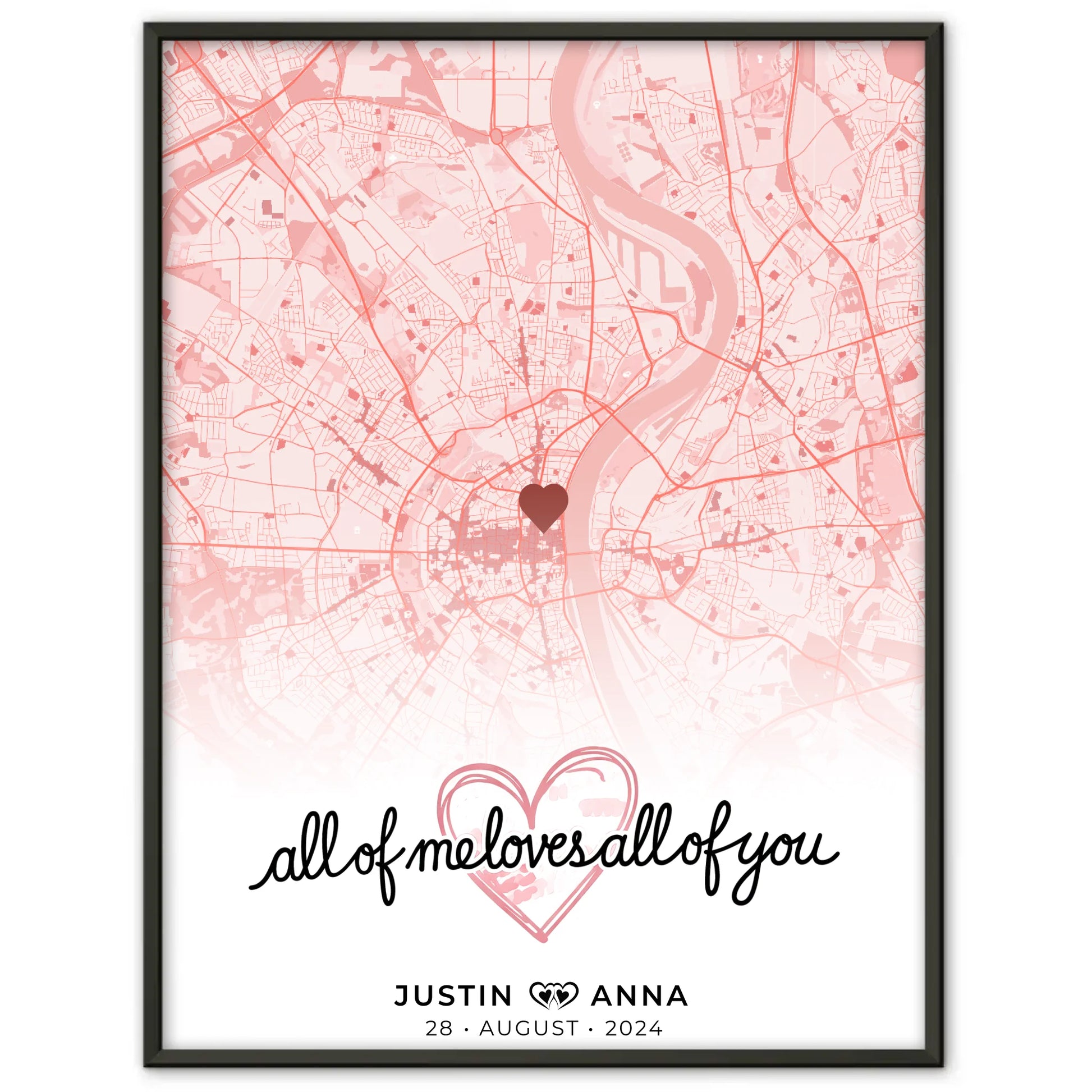 Personalisiertes Stadtkarten Poster für Paare - All Of Me Loves All Of You