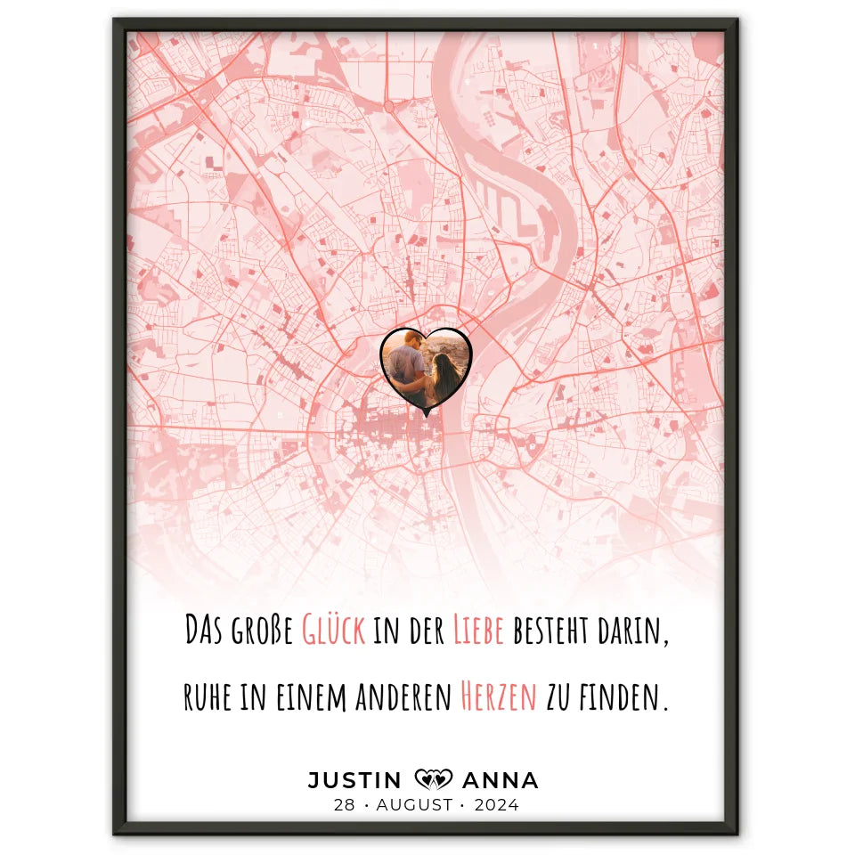 Personalisiertes Stadtkarten Poster für Paare - Das Große Glück Roserot
