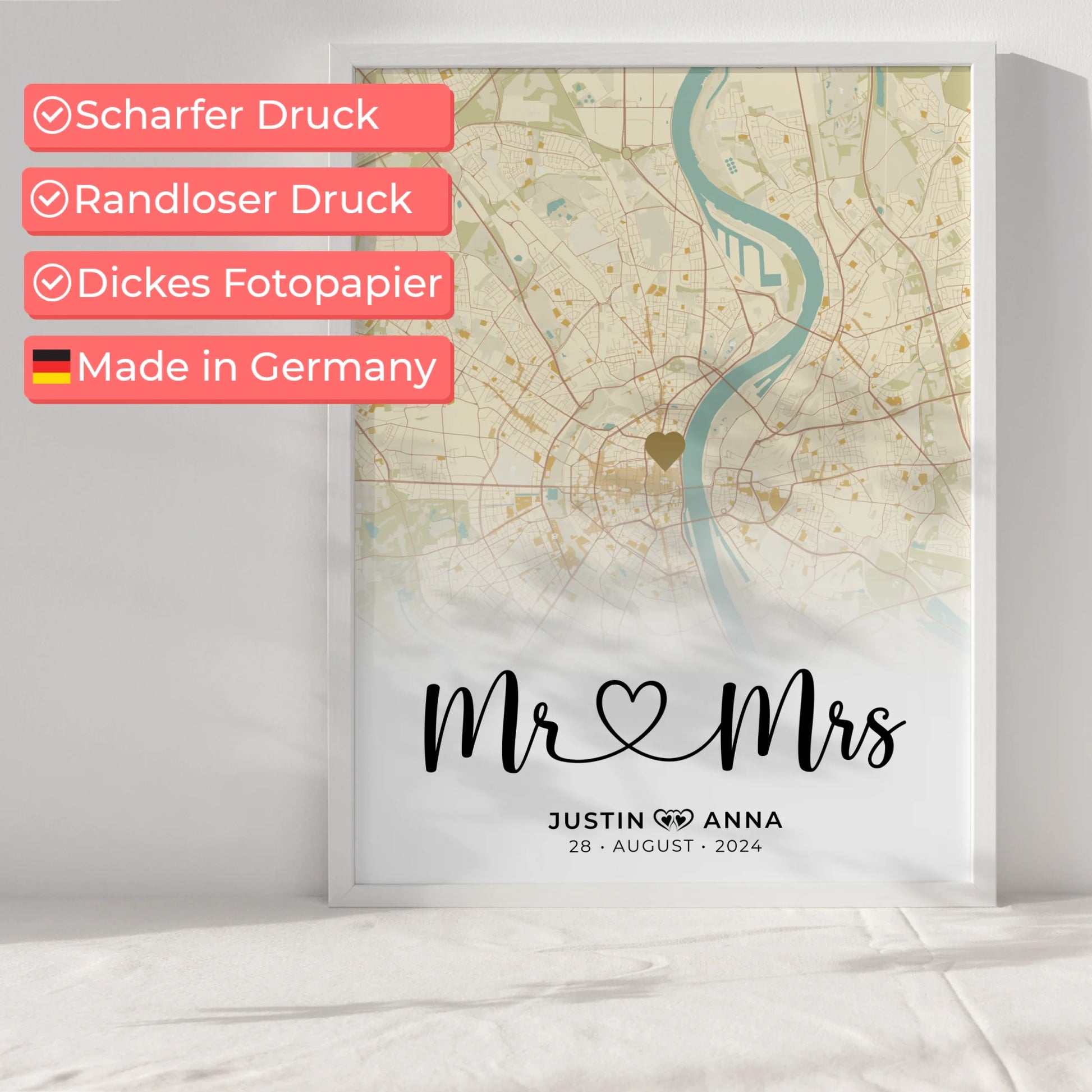 Personalisiertes Stadtkarten Poster für Paare Mr & Mrs Vintage Wo Alles Begann